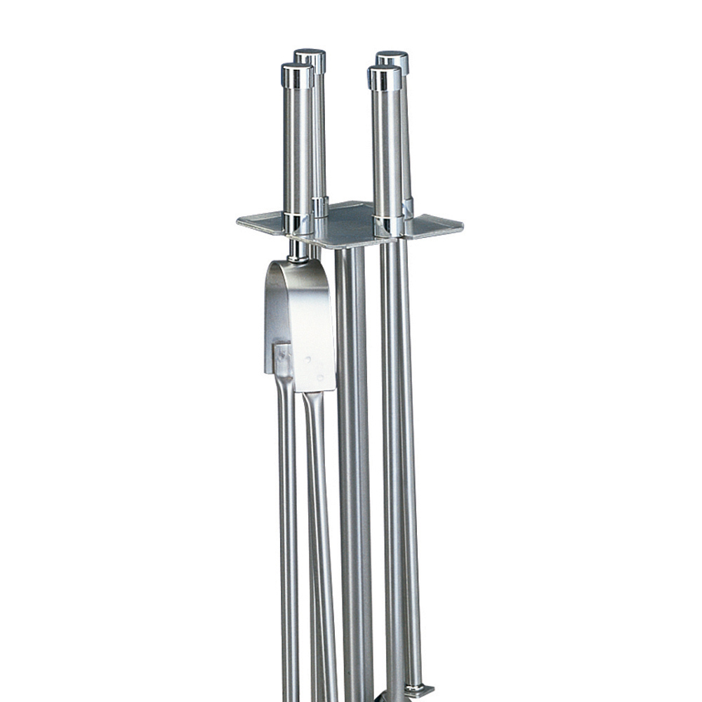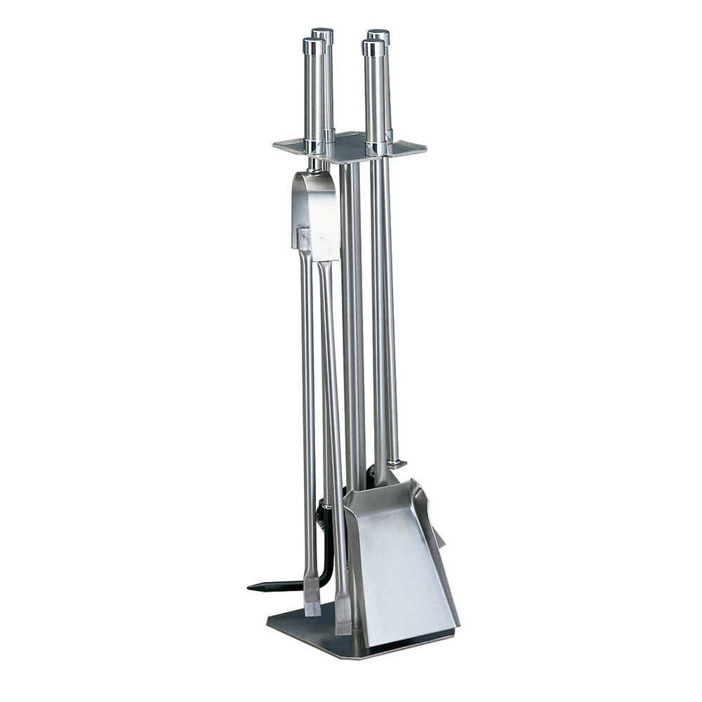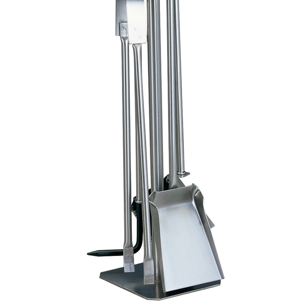 Das Set besteht aus vier wesentlichen Teilen mit jeweils einem langen Griff für eine sichere und bequeme Handhabung des Feuers. Das schlanke Design und die elegante quadratische Basis sorgen dafür, dass Werkzeuge immer griffbereit sind, während der minimalistische Look zu jeder Umgebung passt, von traditionell bis modern.