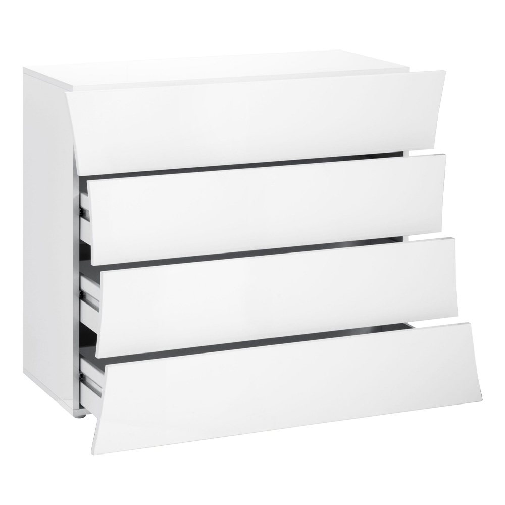 Gewölbte weiße Holzkommode mit 4 Schubladen made in Italy.