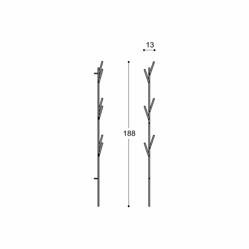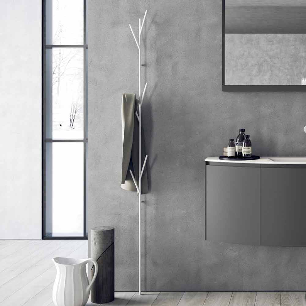 Stilisierte baumförmige Garderobe aus lackiertem Metall. Die zufällig angeordneten "Zweige" dienen als Handtuchhalter oder Bademantel.