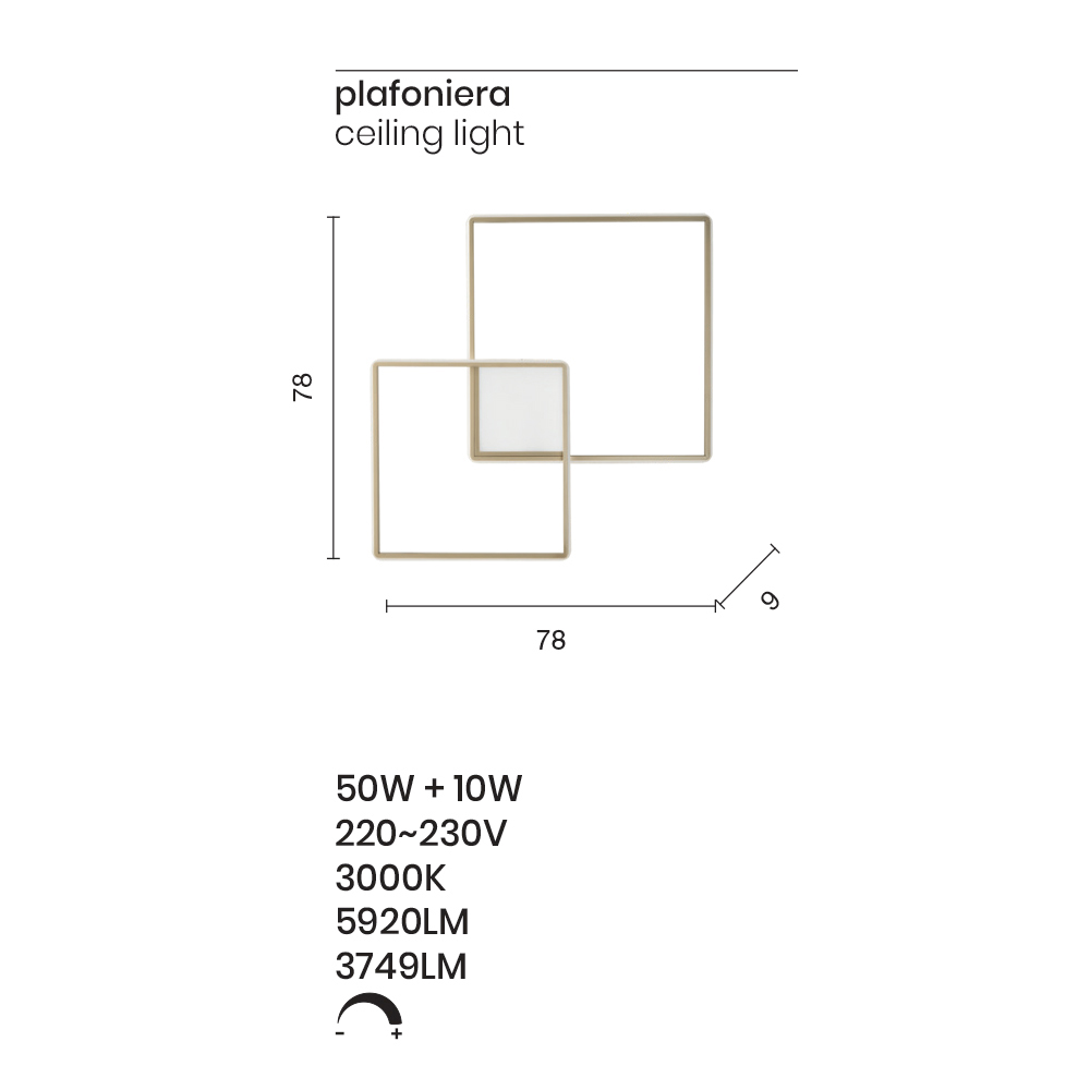- L 78 x T 9 x H 78 cm (50W + 10W 230V 6000LM);