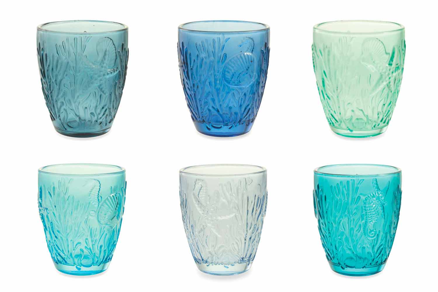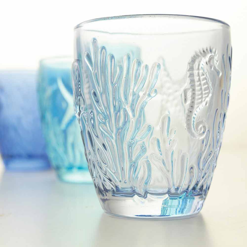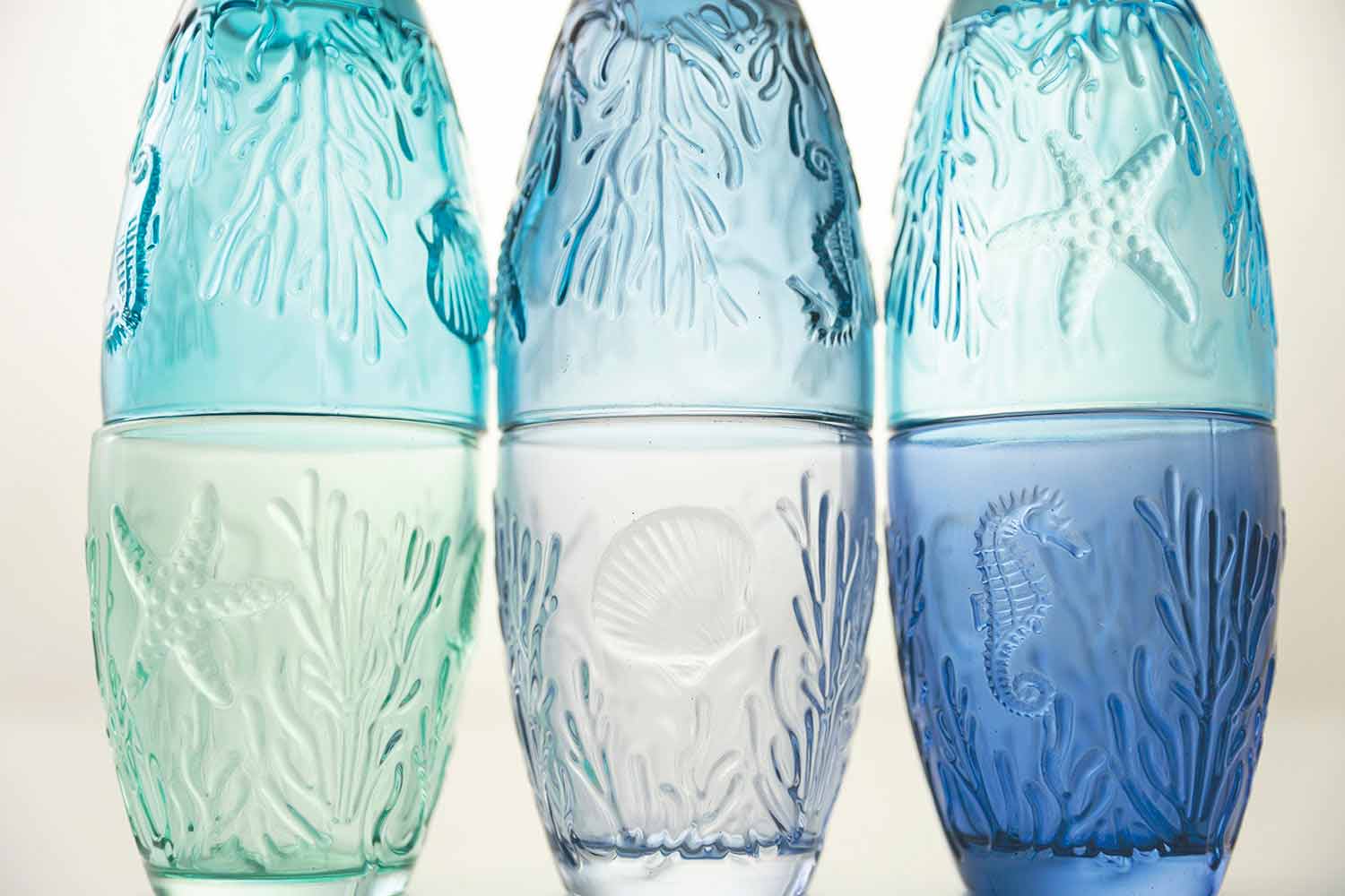 Meer inspiriert ist, sondern es in seiner Gesamtheit zurücknimmt und auf der Außenfläche des Glases seine einfache und nicht kontaminierte Schönheit rekonstruiert: Seesterne, Muscheln, Algen und Korallen werden fein geschnitzt, um einen Juweleneffekt zu erzielen fein und raffiniert.