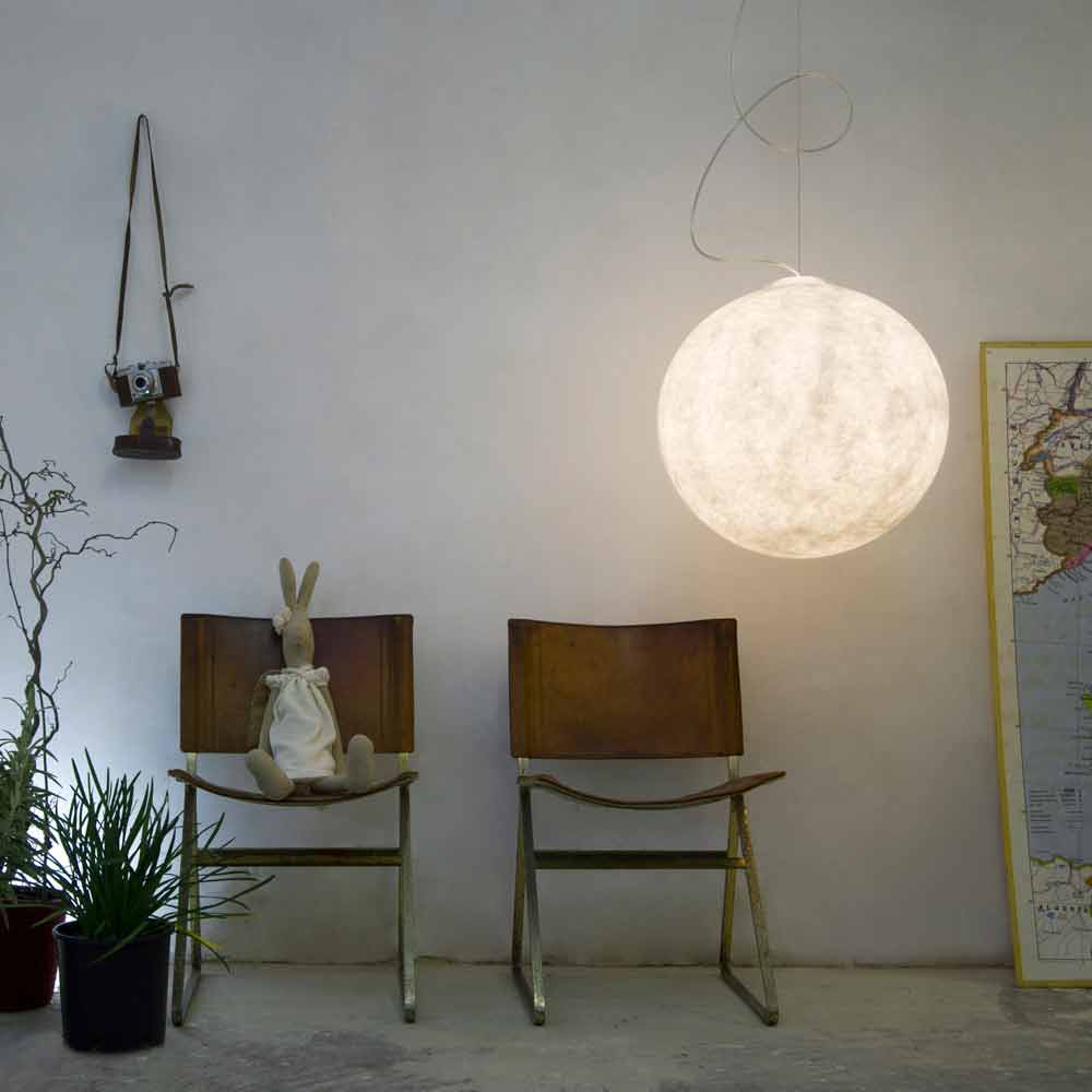Sicher diejenigen, die die moderne Pendelleuchte Luna von In-es.artdesign für die Luna-Kollektion besitzen. Dank des innovativen Materials, mit dem sie hergestellt wird: Nebulite® , ein Material aus Harz und Fasern, dessen Adern der Lampe die Möglichkeit geben , eine magische Mondatmosphäre zu erzeugen .