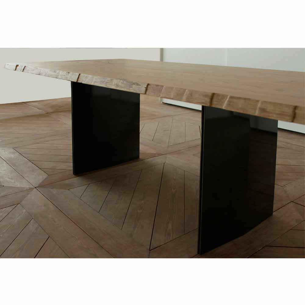 Der feste Tisch von Paul zeichnet sich durch ein helles Holzdach aus Eichenholz aus, das in Formen und Farben unregelmäßig ist, genau wie die Natur es schafft. Keller in rohem schwarzem Blatt, das mit Öl beendet wurde.