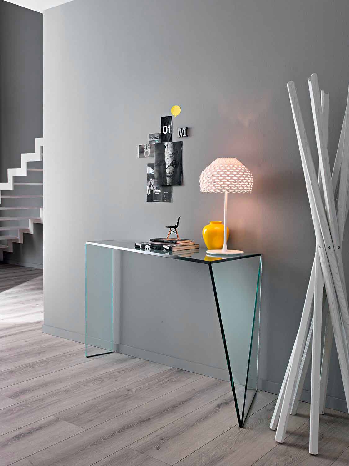 Moderne Konsole handgefertigt in Italien in extraklarem Glas.