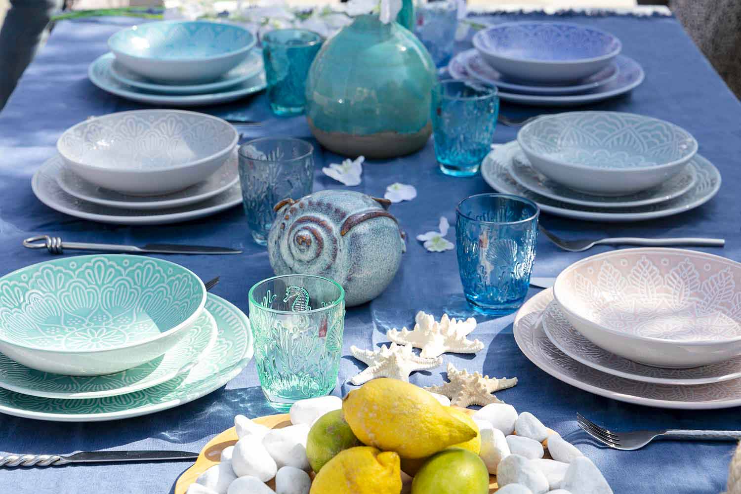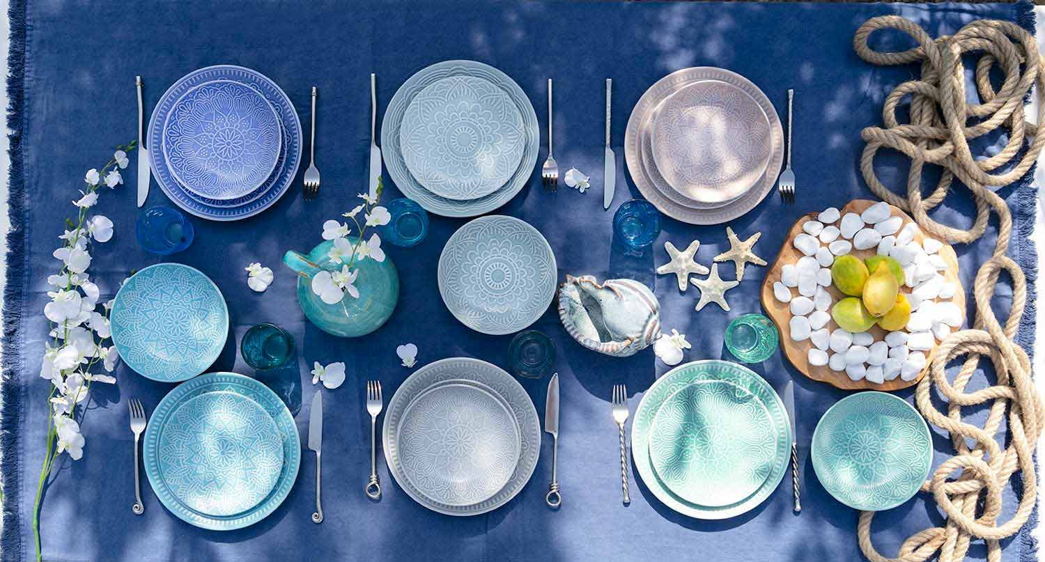 widerstandsfähig halten sie die Hitze des Geschirrs warm und erleichtern den Service. Sie entwickeln die Philosophie der Farbe auf dem Tisch durch Zurrfarben und funktionale Formen, die mit glänzenden oder matten