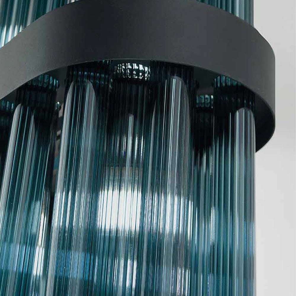 - Blaugrünes Glas - geprägtes anthrazitfarbenes Metall;