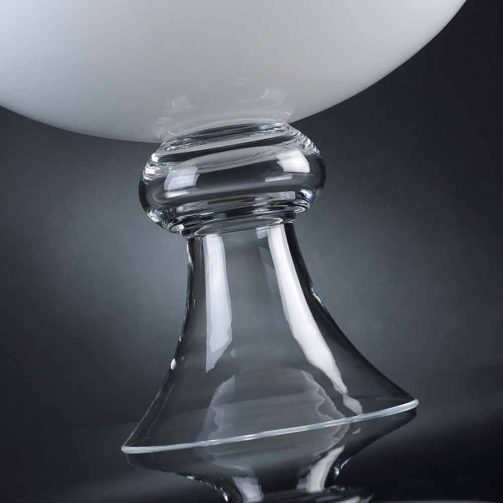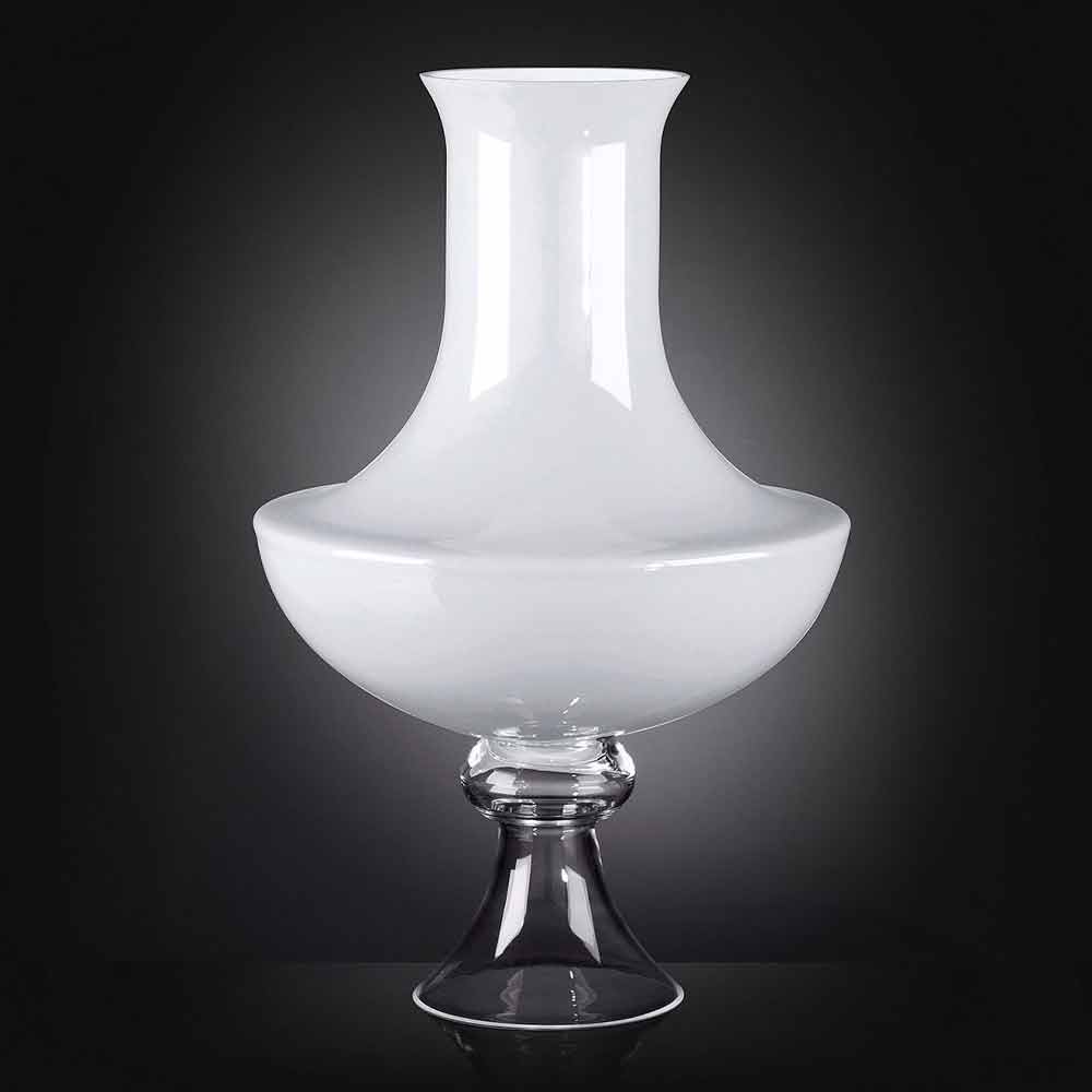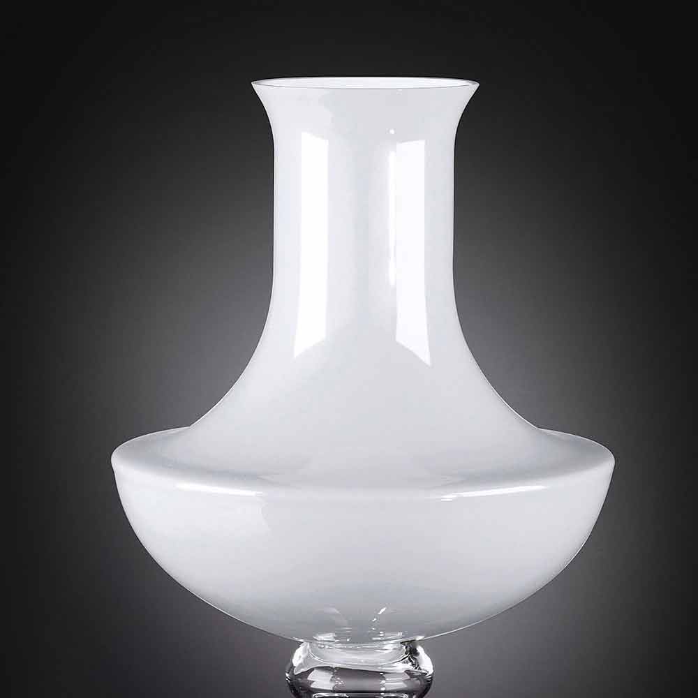 Moderne Vase für Innenräume aus weißem Glas mit transparentem Boden, hergestellt durch ein 100% Made in Italy-Verfahren . Eine Ergänzung, die sich durch eine einfache und klare Ästhetik und eine durch weiche Formen und geschwungene Linien geprägte Figur auszeichnet, die es ermöglichen, in jeder Umgebung mit einem raffinierten Stil verwendet zu werden, auch dank der zeitlosen Eleganz von Glas, einem hochwertigen Material von hohem Wert. . Ein ideales Design für die unterschiedlichsten Umgebungen, von der Wohnungseinrichtung bis hin zu Hotels, Restaurants, Objektbereichen, Spas, aber auch als Rahmen für Veranstaltungen und Hochzeiten.