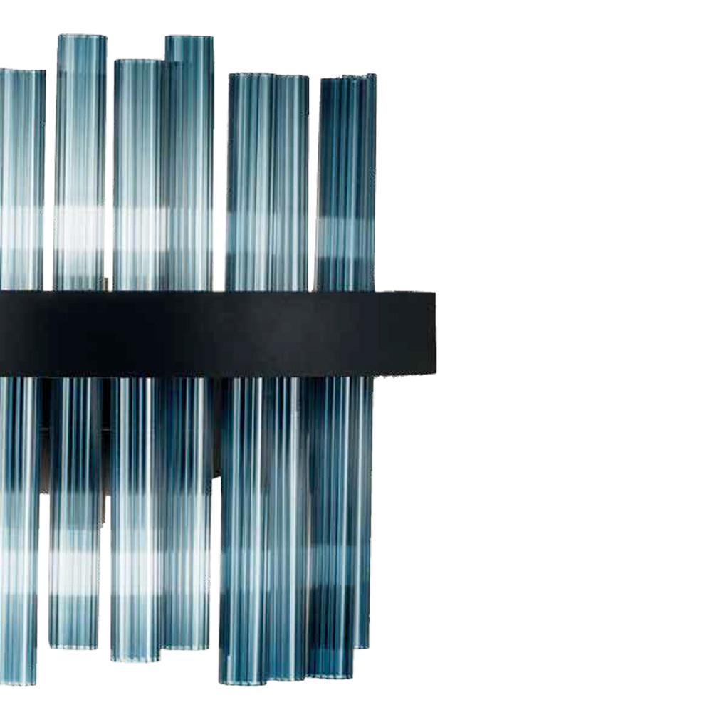 Die Applikation mit modernem und raffiniertem Design ist ein luxuriöses Beleuchtungszubehör , das vollständig in Italien aus geblasenem gestreiftem Glas handgefertigt wird Metallstruktur hergestellt und von Hand bemalt.