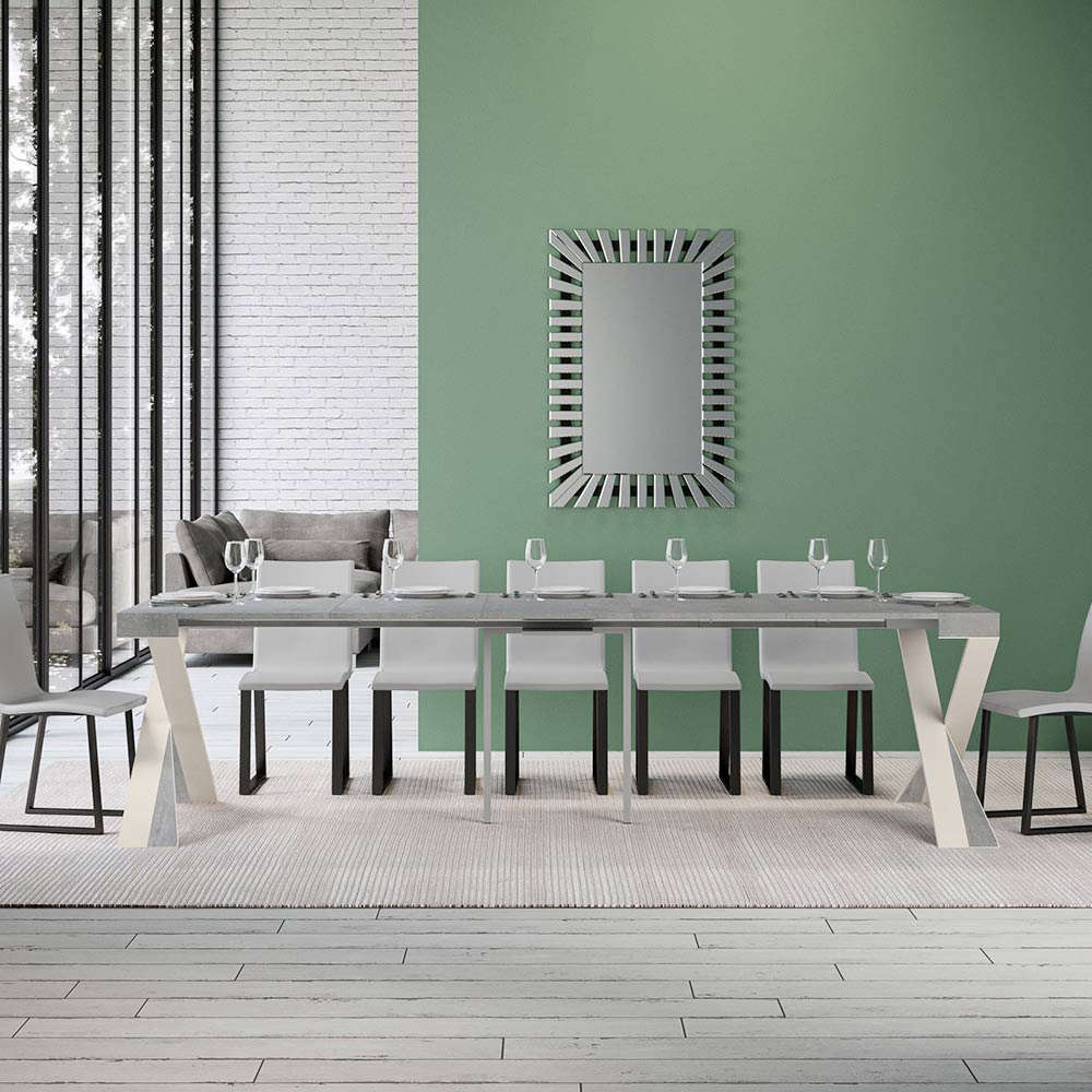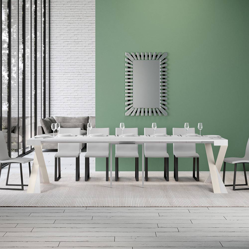 Moderne Konsole, ausziehbar auf 300 cm, mit weißem Rahmen, hergestellt in Italien – Spiegel