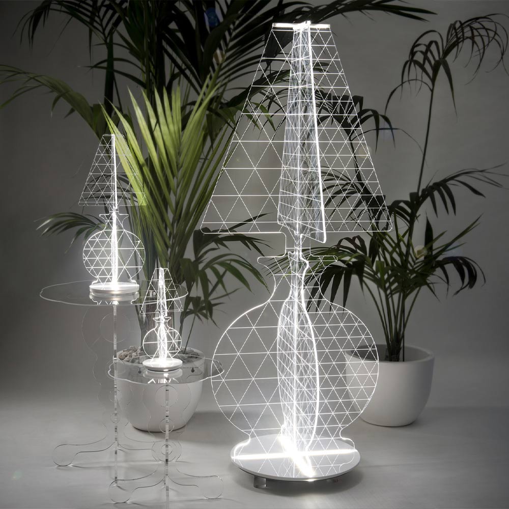 Laserbeschriftete Plexiglas-Tischleuchte, 3 Größen made in Italy.