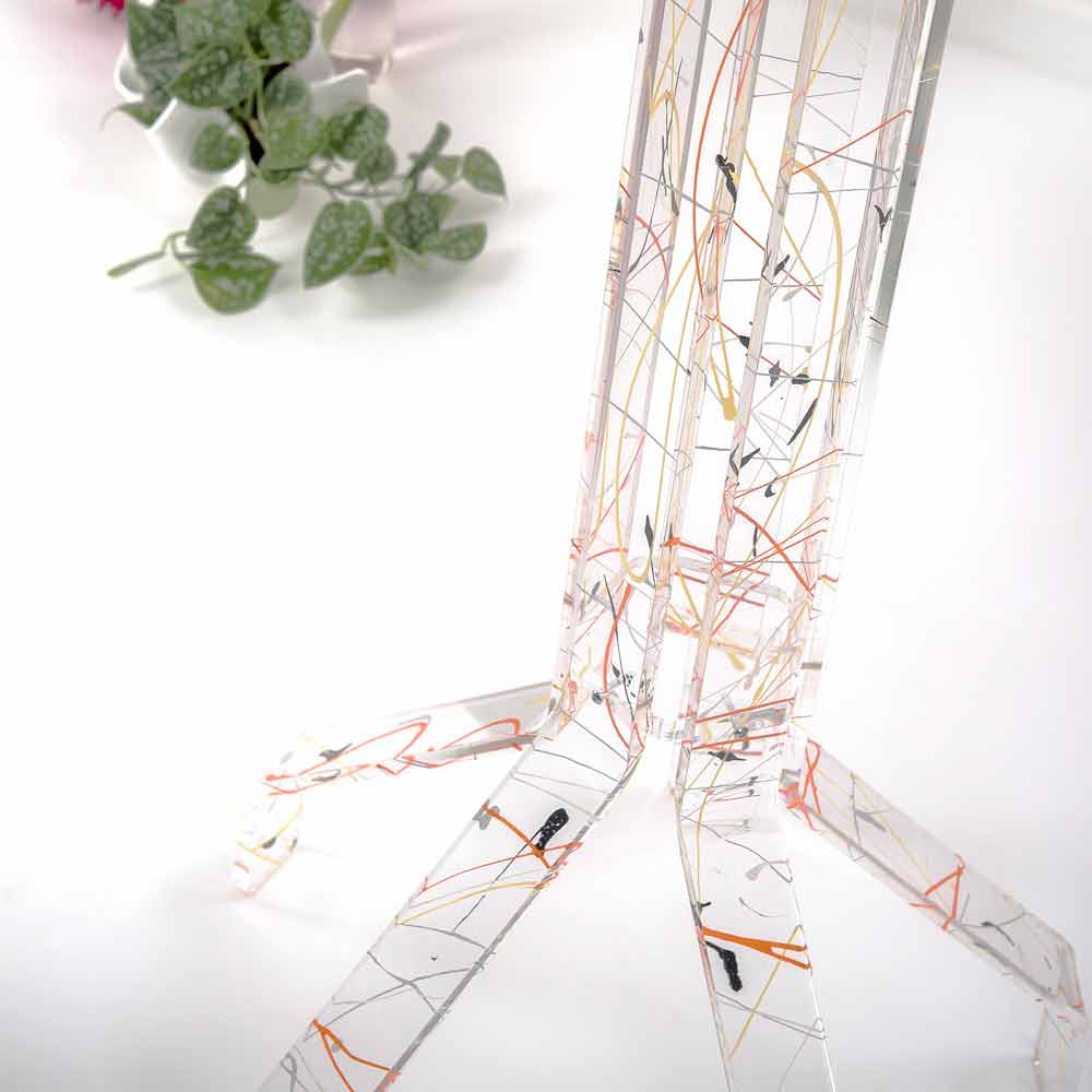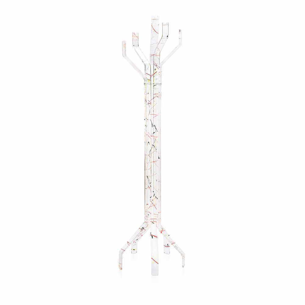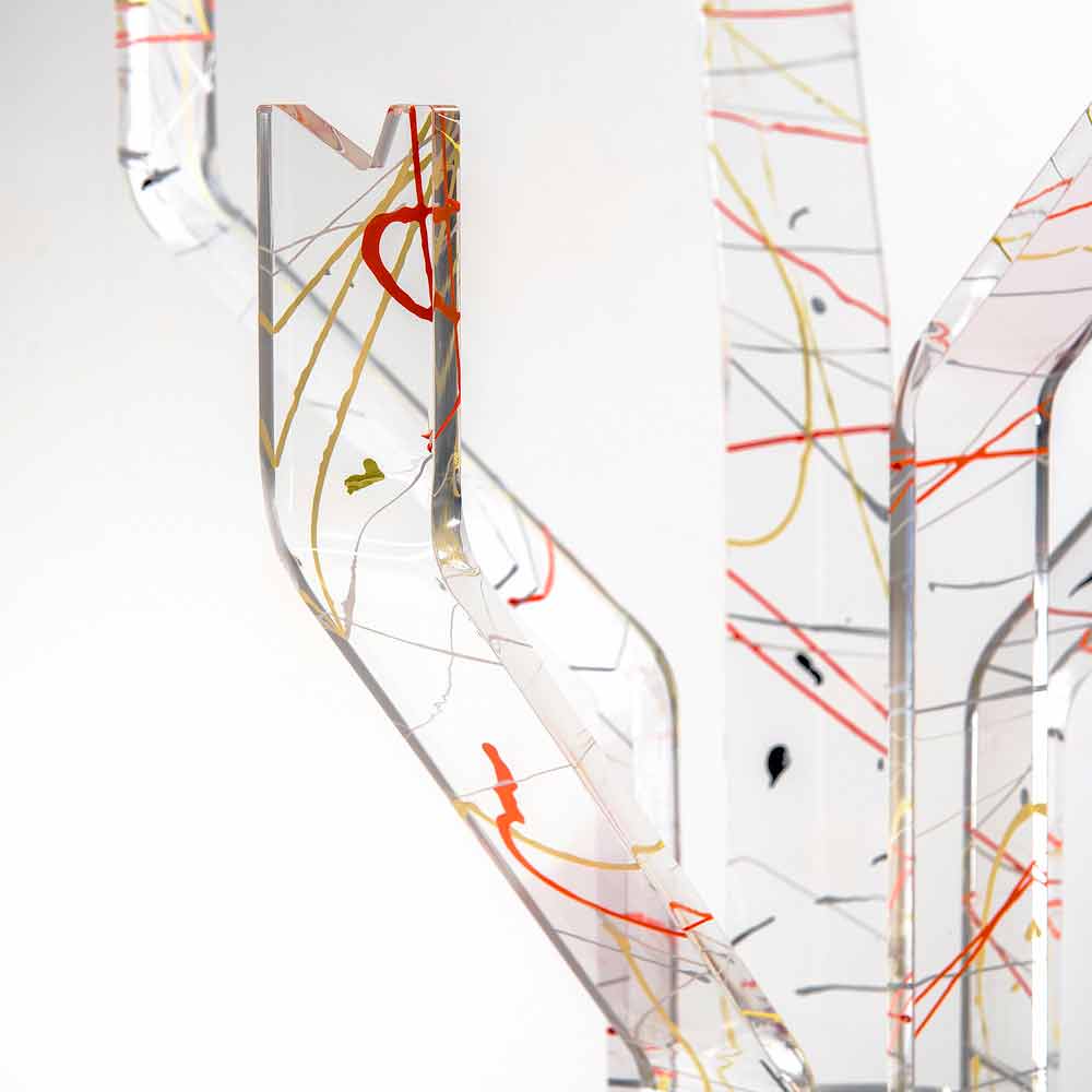 Andrea ist ein asymmetrischer 5-Arm-Kleiderbügel aus 100% reinen Polymer-PMMA-Plexiglas mit Spritzlackierungen, die ihn mehrfarbig machen.