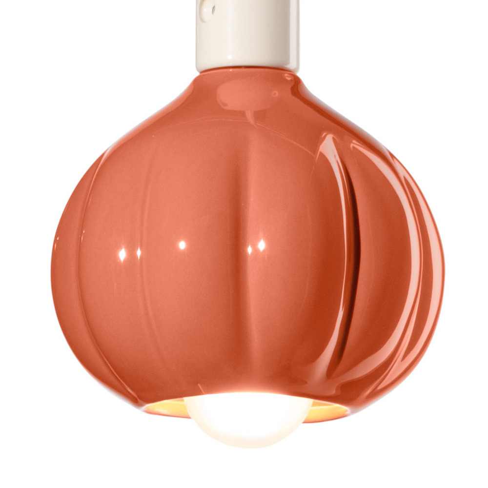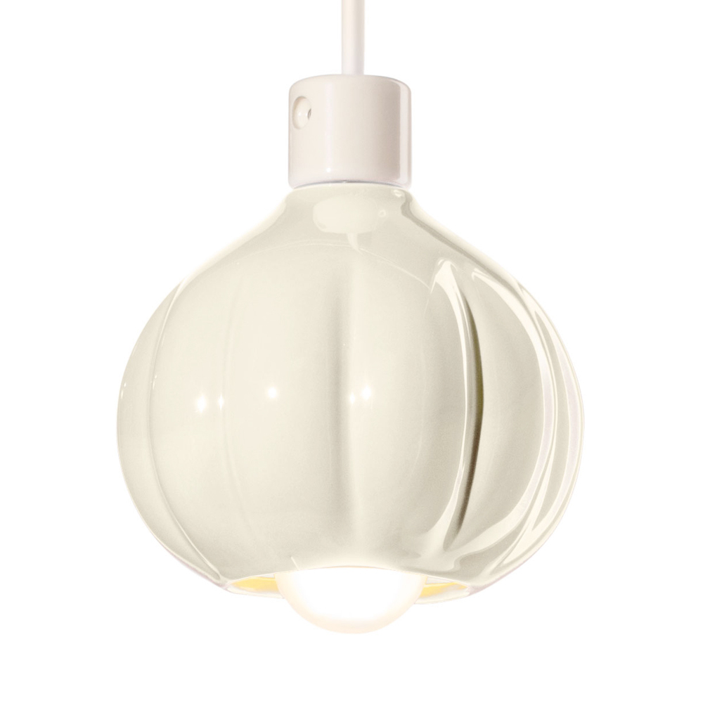 Das glatte und glänzende Erscheinungsbild von Keramik ist das Ergebnis einer sorgfältigen Verarbeitung, die nicht nur einen Hauch von optischem Glanz verleiht, sondern auch eine lange Haltbarkeit garantiert. Die Lampe hängt anmutig an einer schlanken Schnur, die ein klares, modernes Designelement hinzufügt und es der Lampe ermöglicht, zum Mittelpunkt eines Raumes zu werden, ohne andere dekorative Elemente zu überfordern.