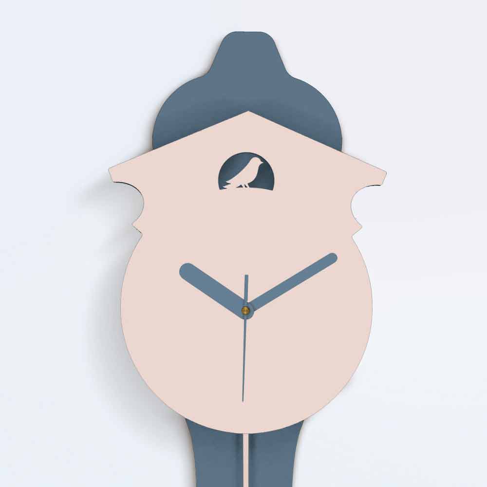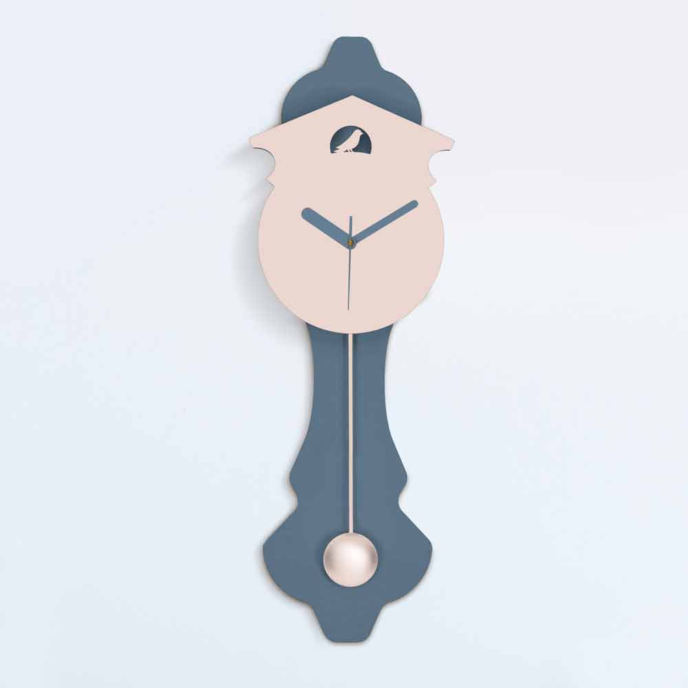 Pendeluhr Wand grau und rosa, modernes Design aus lasergeschnittenem Holz, hergestellt in Italien.