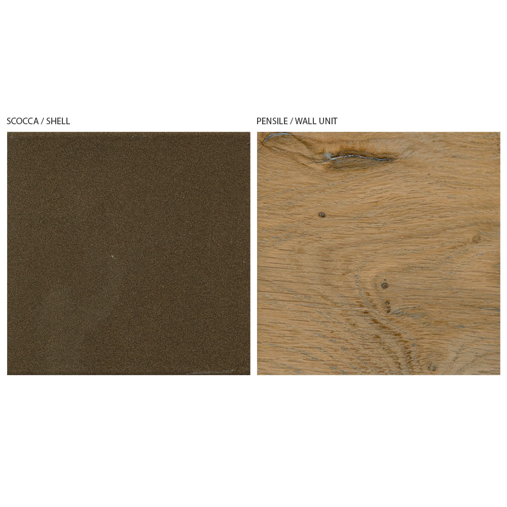 - Nordische Wandeinheit aus geknoteter Eiche: Länge 150 cm x Tiefe 39,5 cm x Höhe 4,4 cm