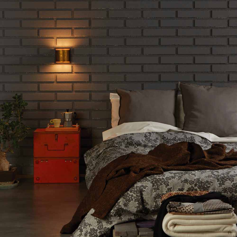 Wandleuchten mit Struktur aus oxidiertem Messing und Unterbau aus Stahl mit Epoxidpulver. Erhältlich in zwei Größen in der runden oder quadratischen Form. Diffusor aus gehärtetem Glas für direkte und indirekte Lichtemission.