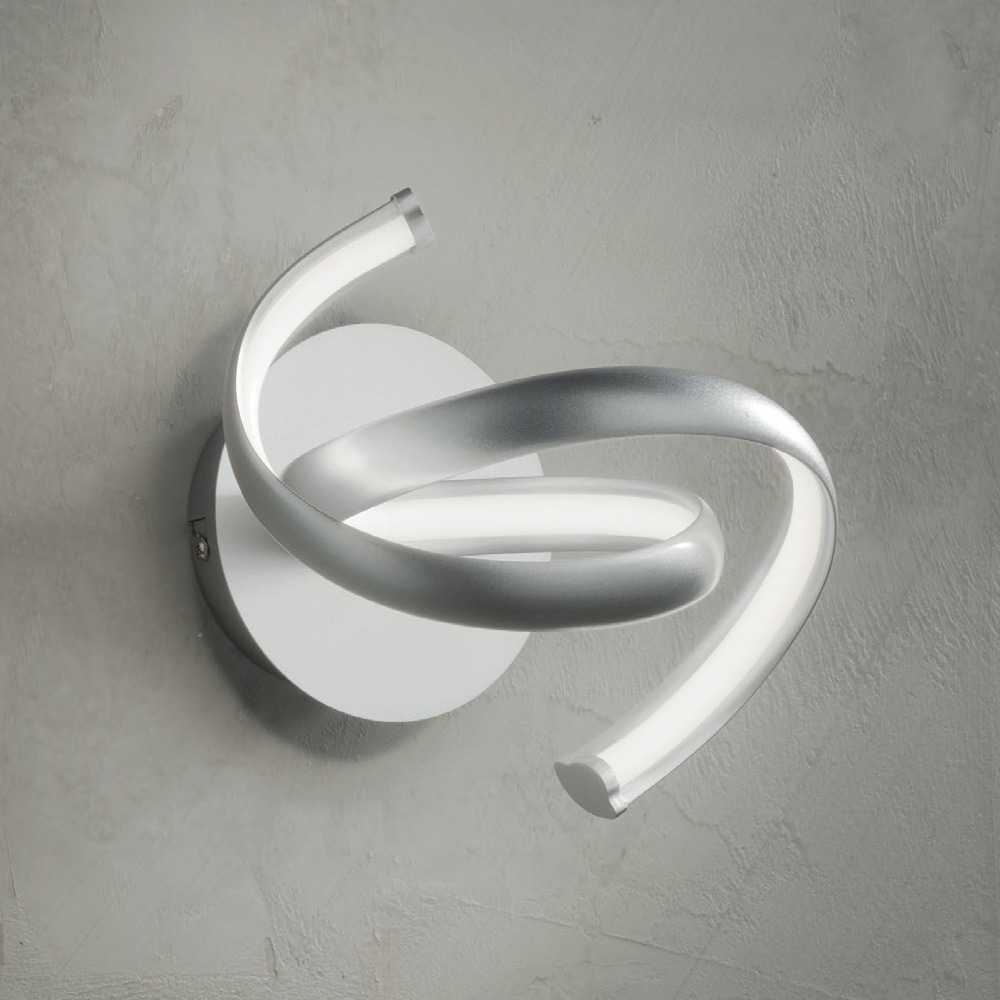 Moderne Wandlampe aus silberfarbenem Metall, LED-Wand im minimalistischen Design - Lumino