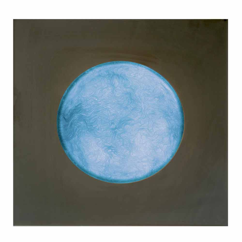 Ein wahres Kunstwerk aus poliertem Stahl und Nebulite, einem Material aus Harz und Fasern, dessen Adern der Lampe einen besonderen Mondeffekt verleihen.