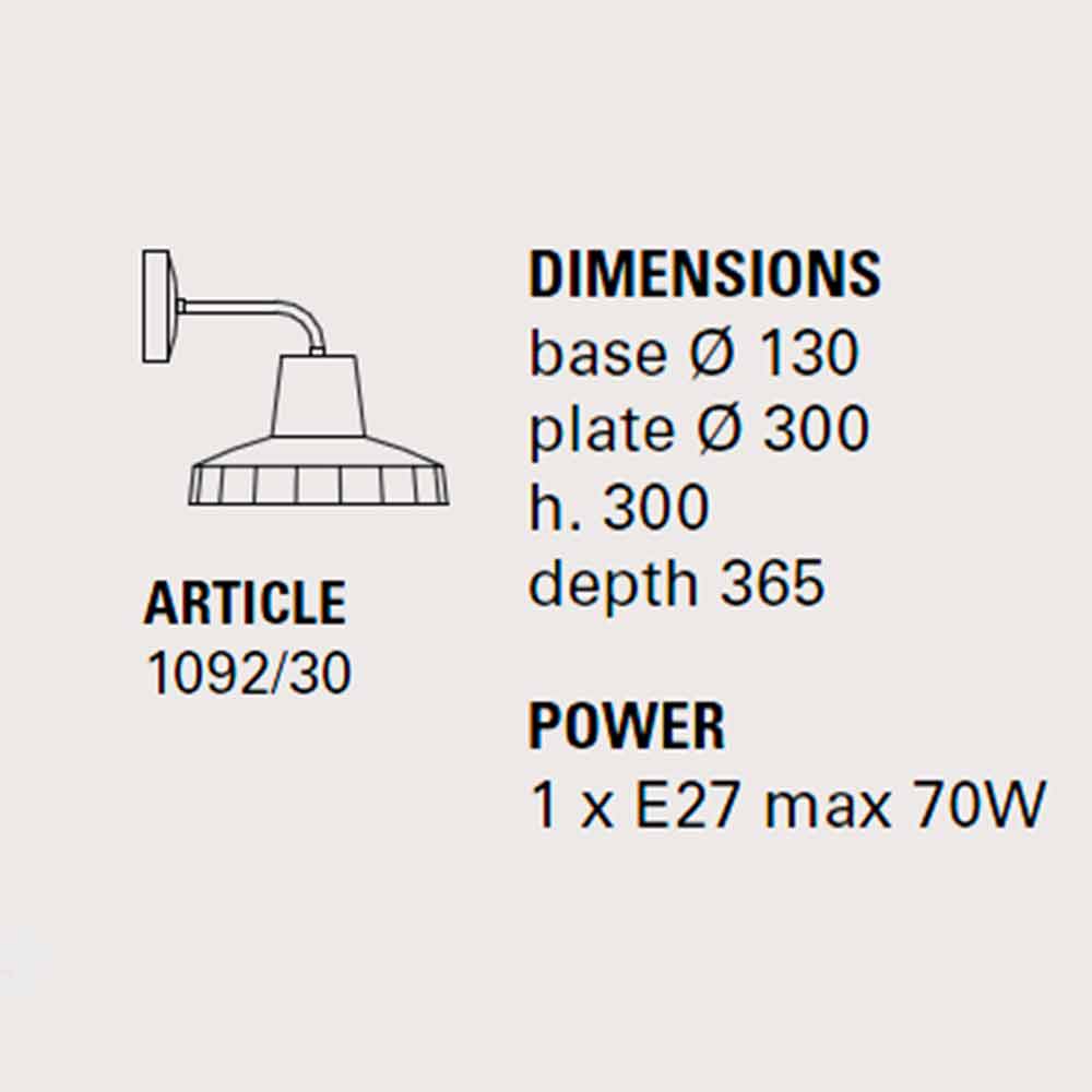 Abmessungen : Basis Ø130 x Platte Ø300 x H 300 x P 365 mm