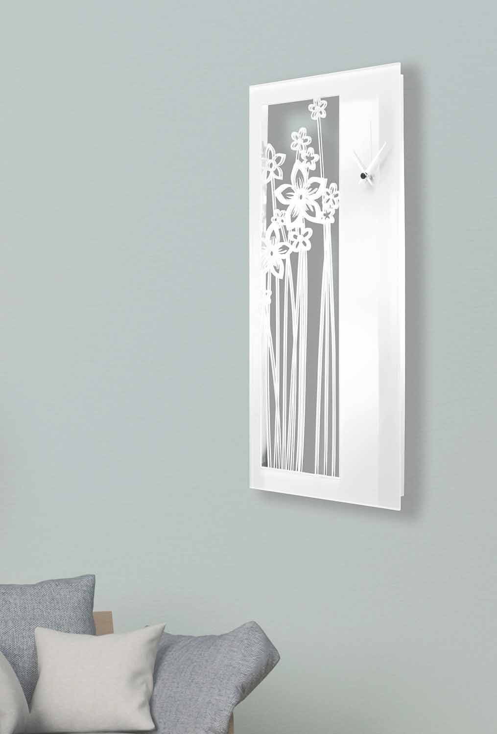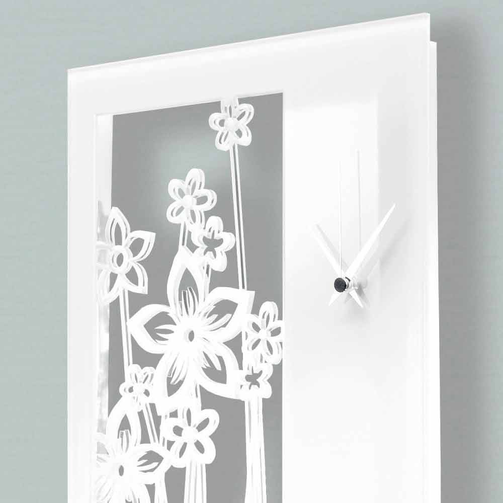 Große Wanduhr mit rechteckigem und modernem Design aus weißem Plexiglas, hergestellt in Italien.