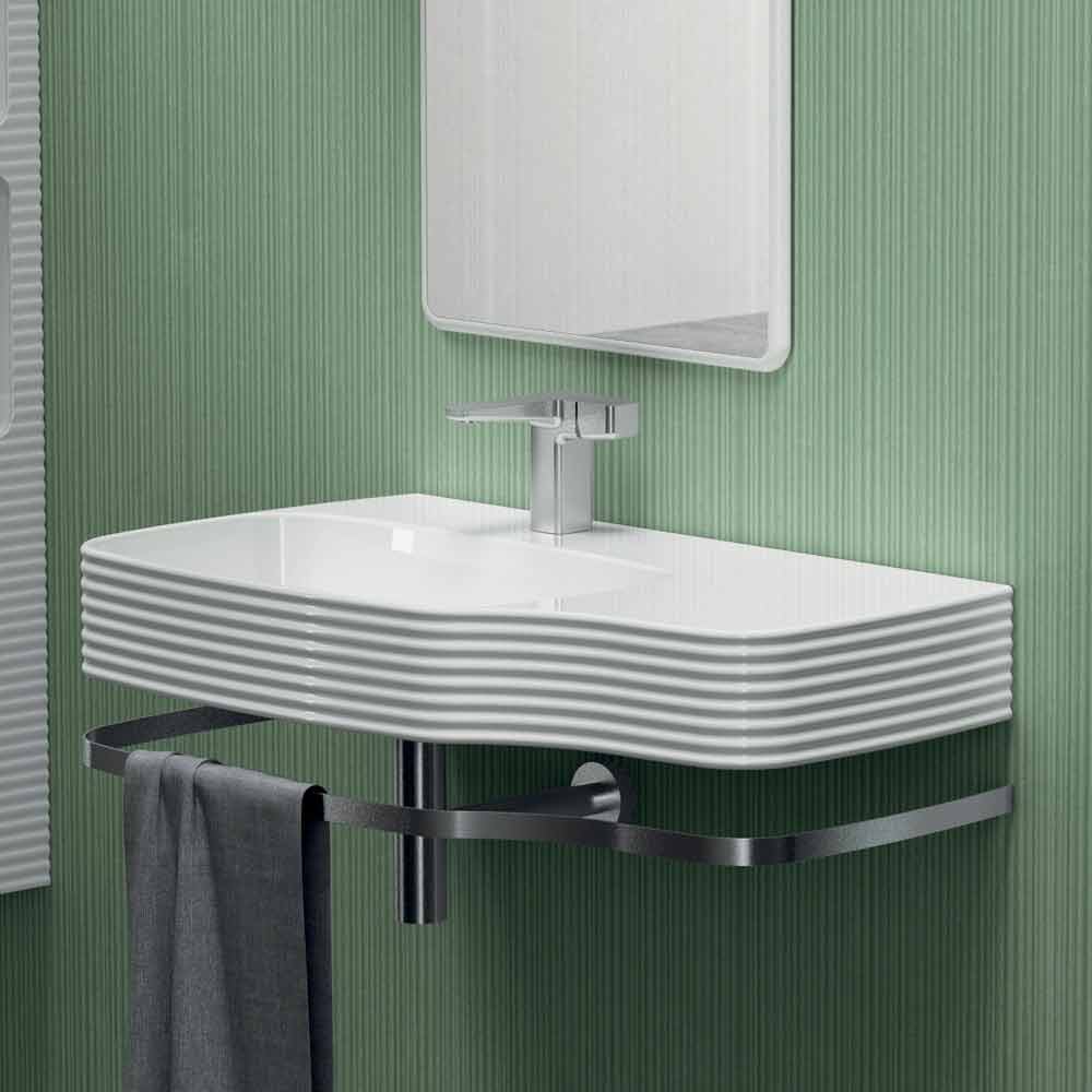 Amleto ist ein eigenartiges Aufsatzwaschbecken aus in Italien handgefertigter Keramik, das sich durch ein originelles Design mit starker ästhetischer Wirkung auszeichnet und sich perfekt für jede Art von Badstil eignet.