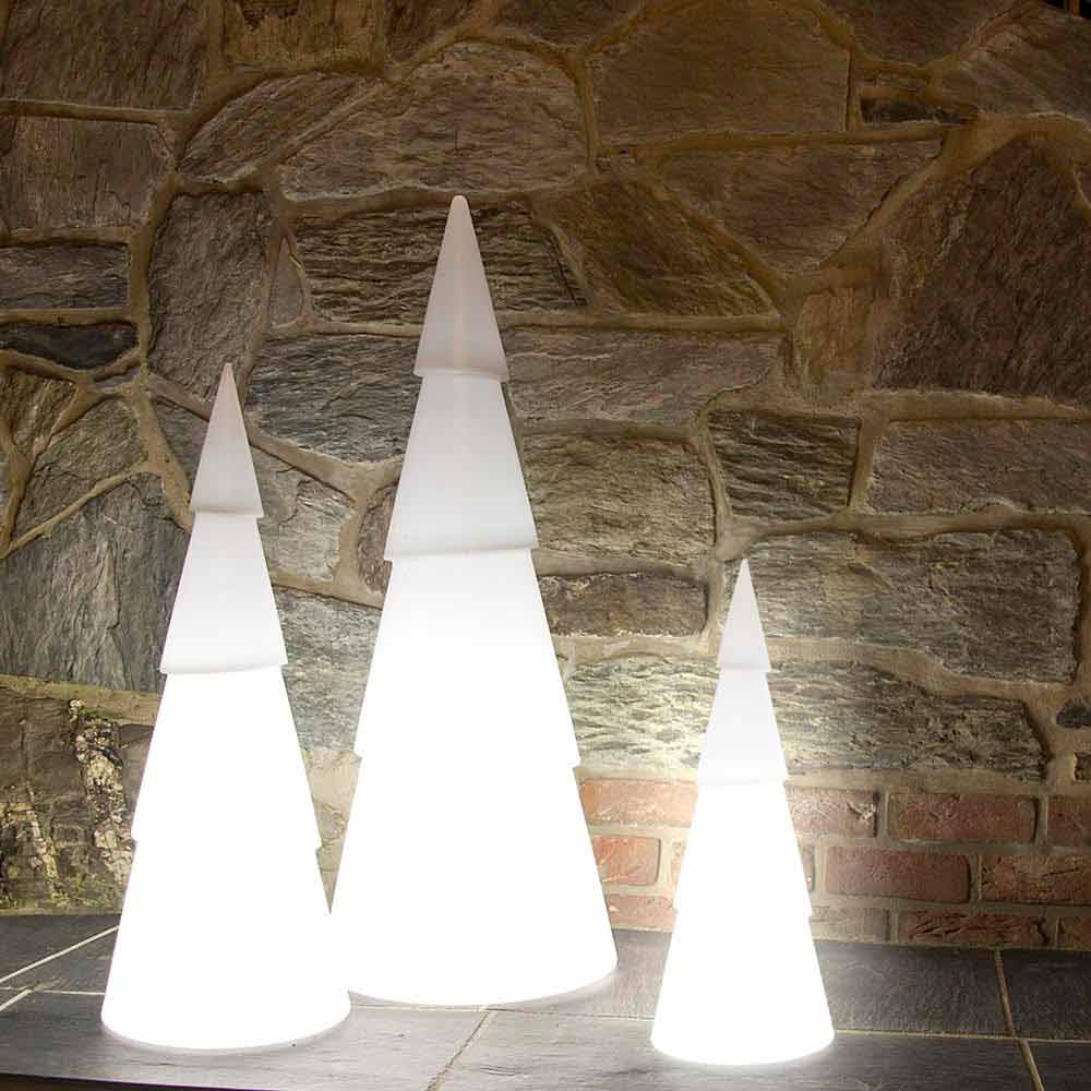 Kegelförmige Christbaum Stehlampe in 3 Größen und 3 Farben modernes Design für drinnen oder draußen.