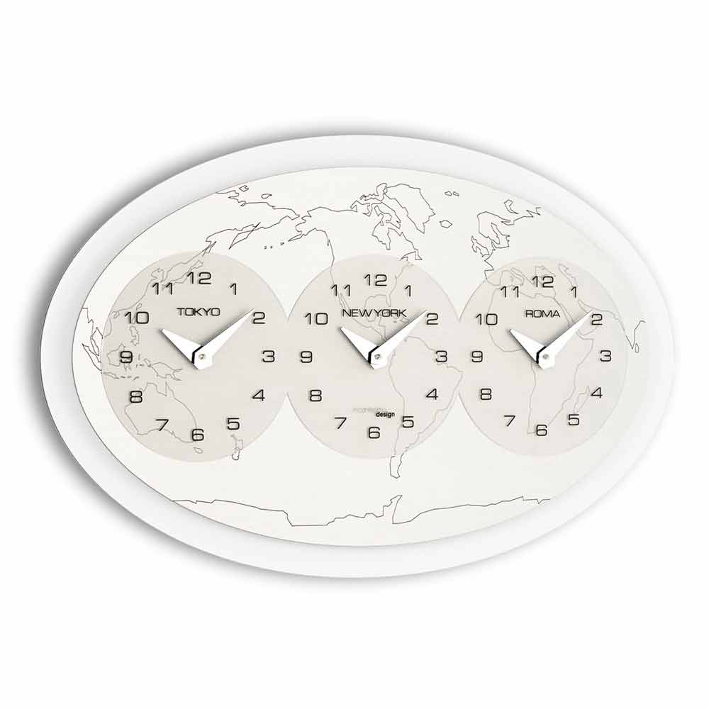 die moderne Zeitzonen Wanduhr besteht ausw 3 unterschiedlichen Zeitzonen und gibt Ihnen smit die Möglichkeit gleichzeitig die Uhrzeit in zwei weiteren Ländern zu sehen. Unabdingbare Uhrwerke für Hotels, Restaurants, Meetingräume oder Konferenzräume. Intelligentes und anspruchsvlles Design bestimmen die Eleganz dieser Wanduhr.