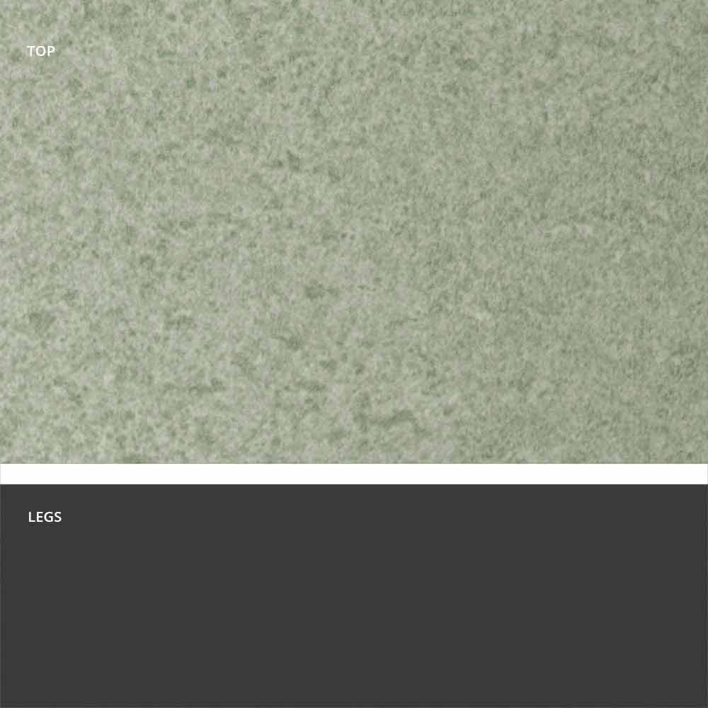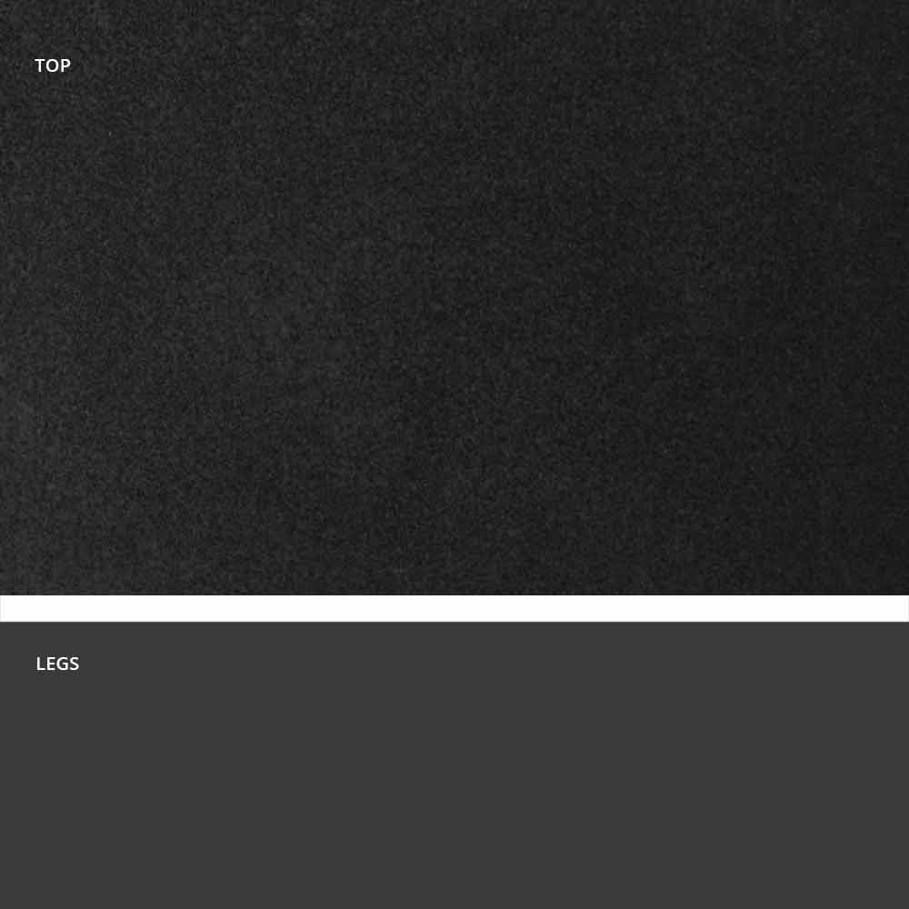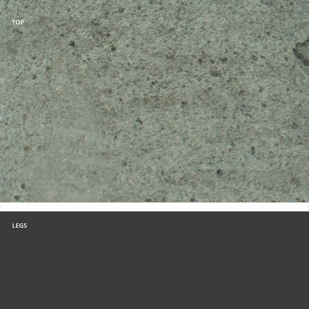 - Tischgestell aus Metall in grauschwarz (RAL 7021) und Tischplatte aus Steingut in Basaltsand;