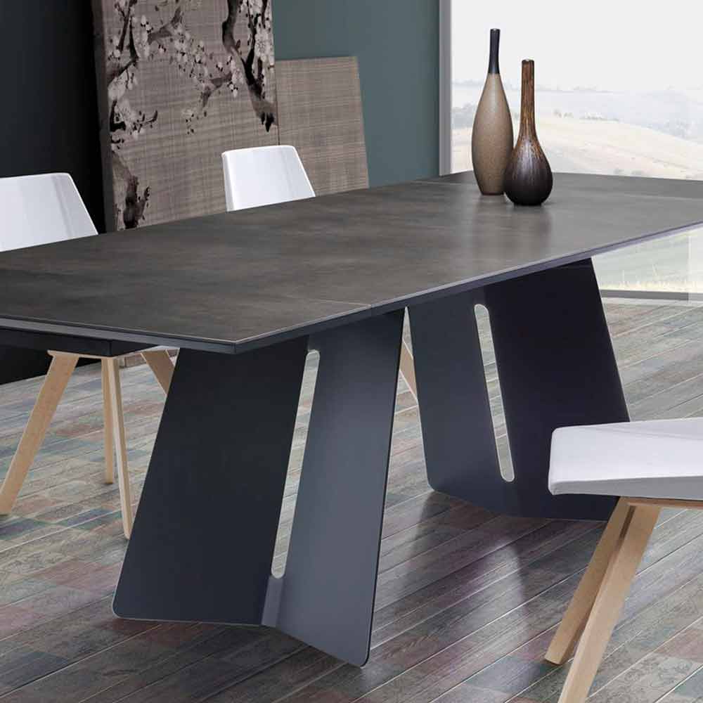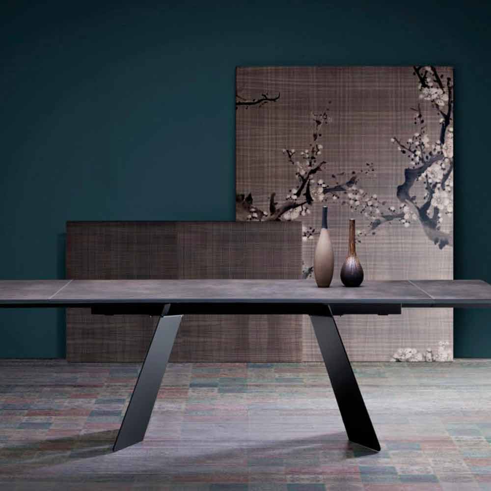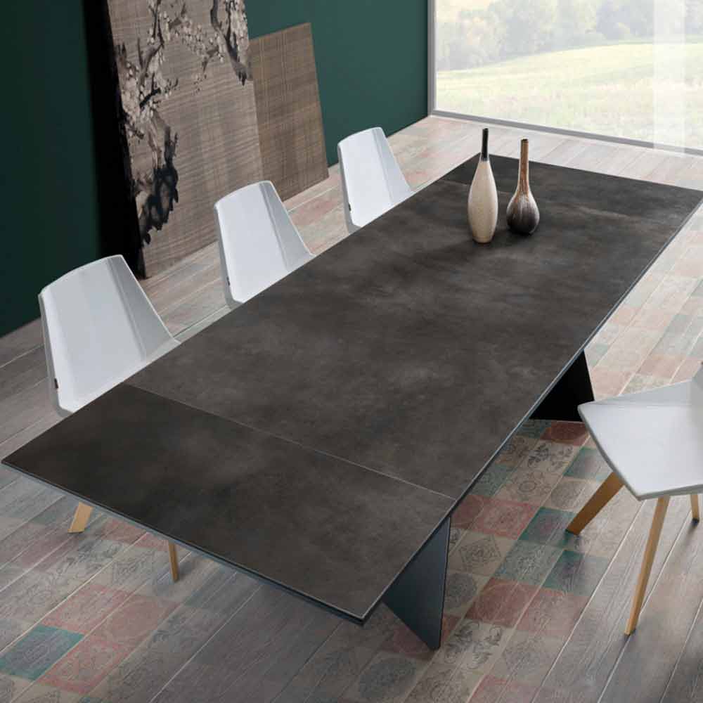 Design Ausziehbahrer Esstisch mit einer Tischplatte aus Steingut made in Italy, Erve