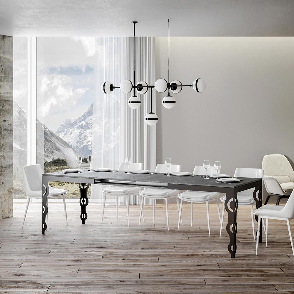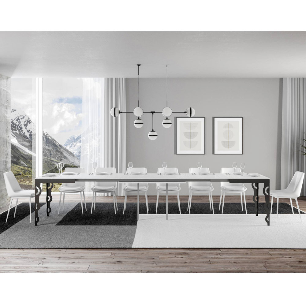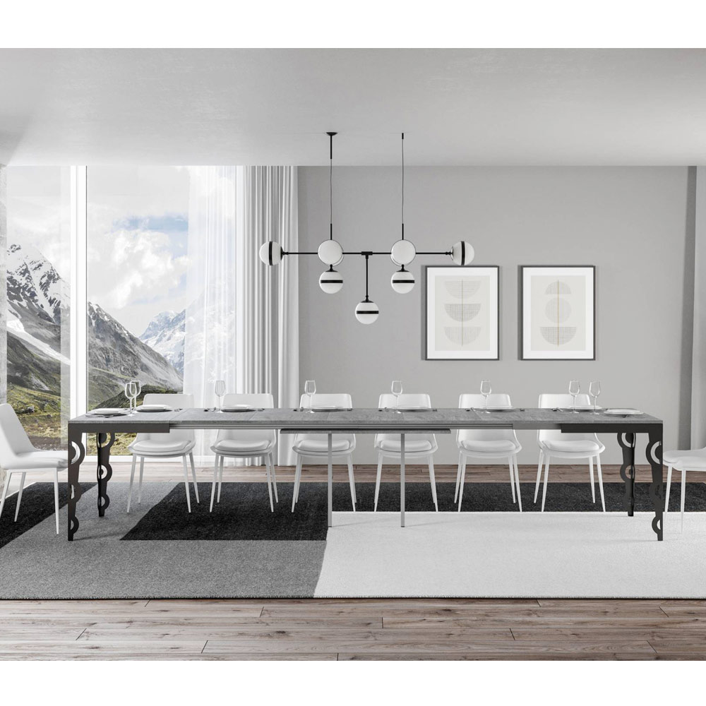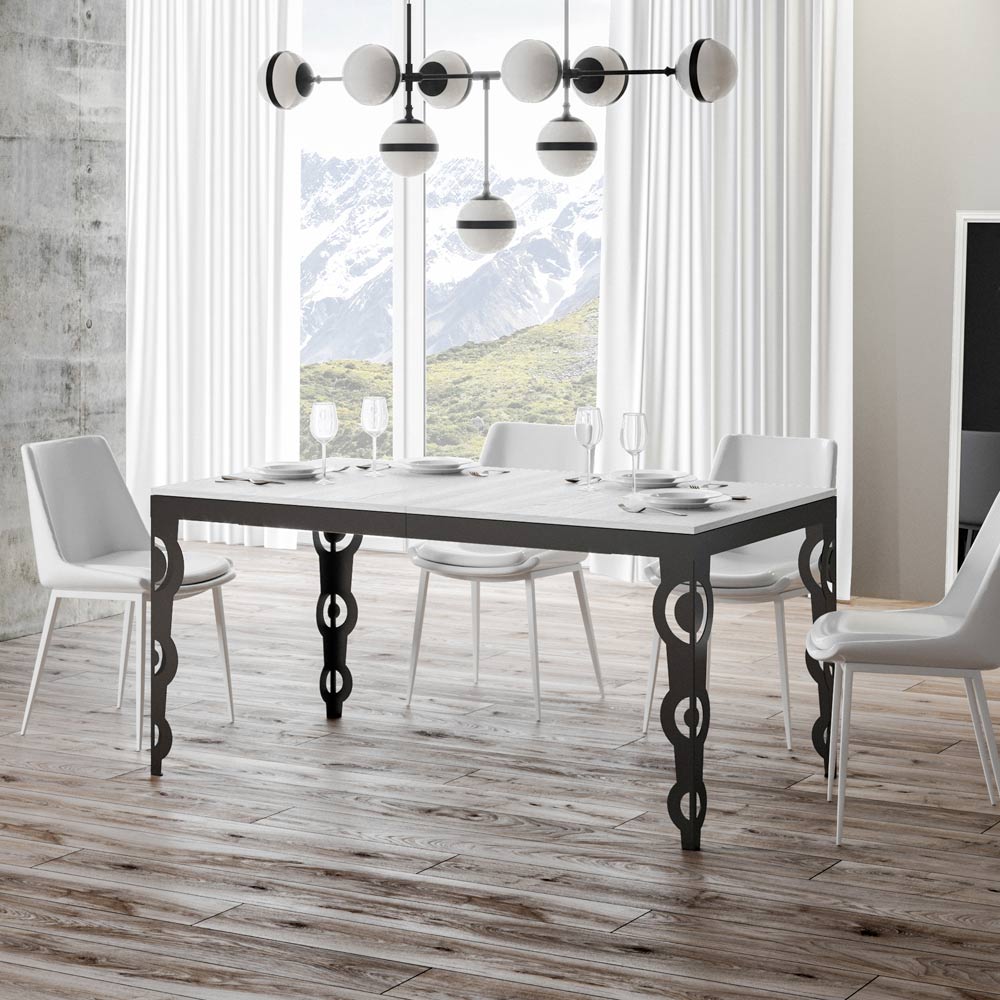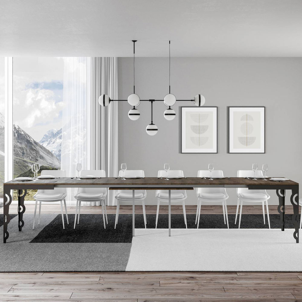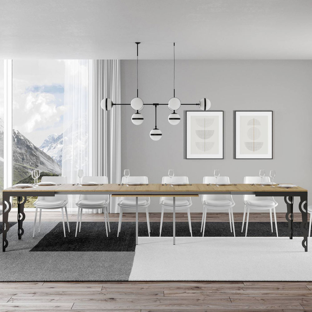 Dieser ausziehbare Tisch ist ein perfektes Beispiel dafür, wie Design und Funktionalität zu etwas ganz Besonderem werden können. Mit seinen eleganten Eisenbeinen, die ein ornamentales Design aufweisen, ist dieser Tisch ein stilvolles Statement, das jedem Raum einen Hauch von Sophistication verleiht.
