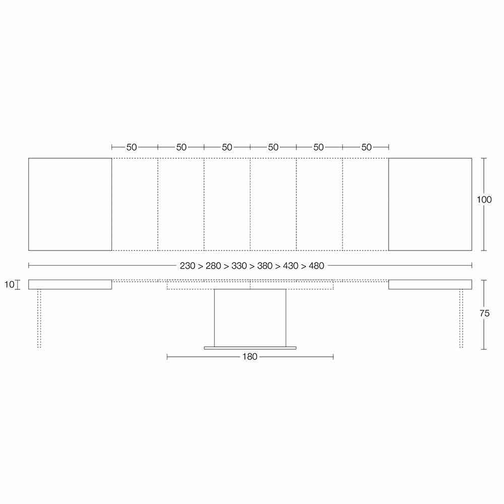 Ausziehbarer Esstisch mit Melaminholzplatte und Metallgestell Made in Italy.