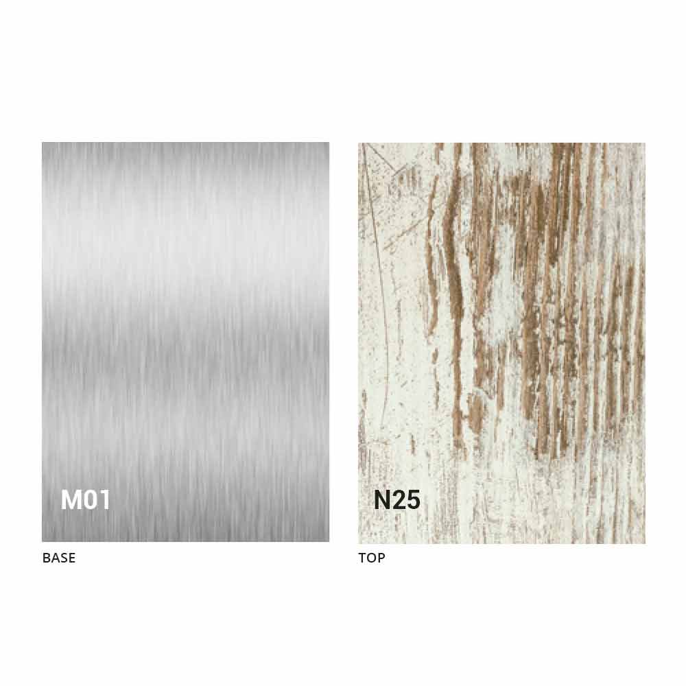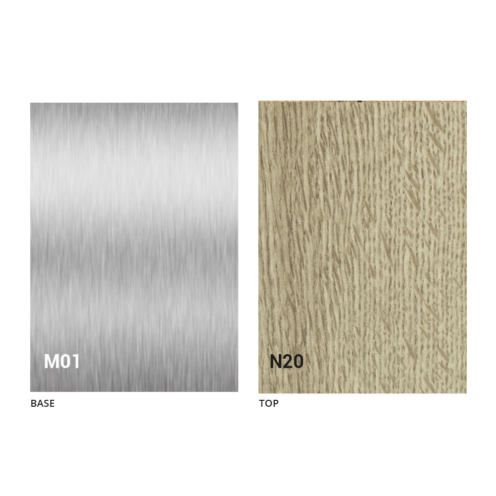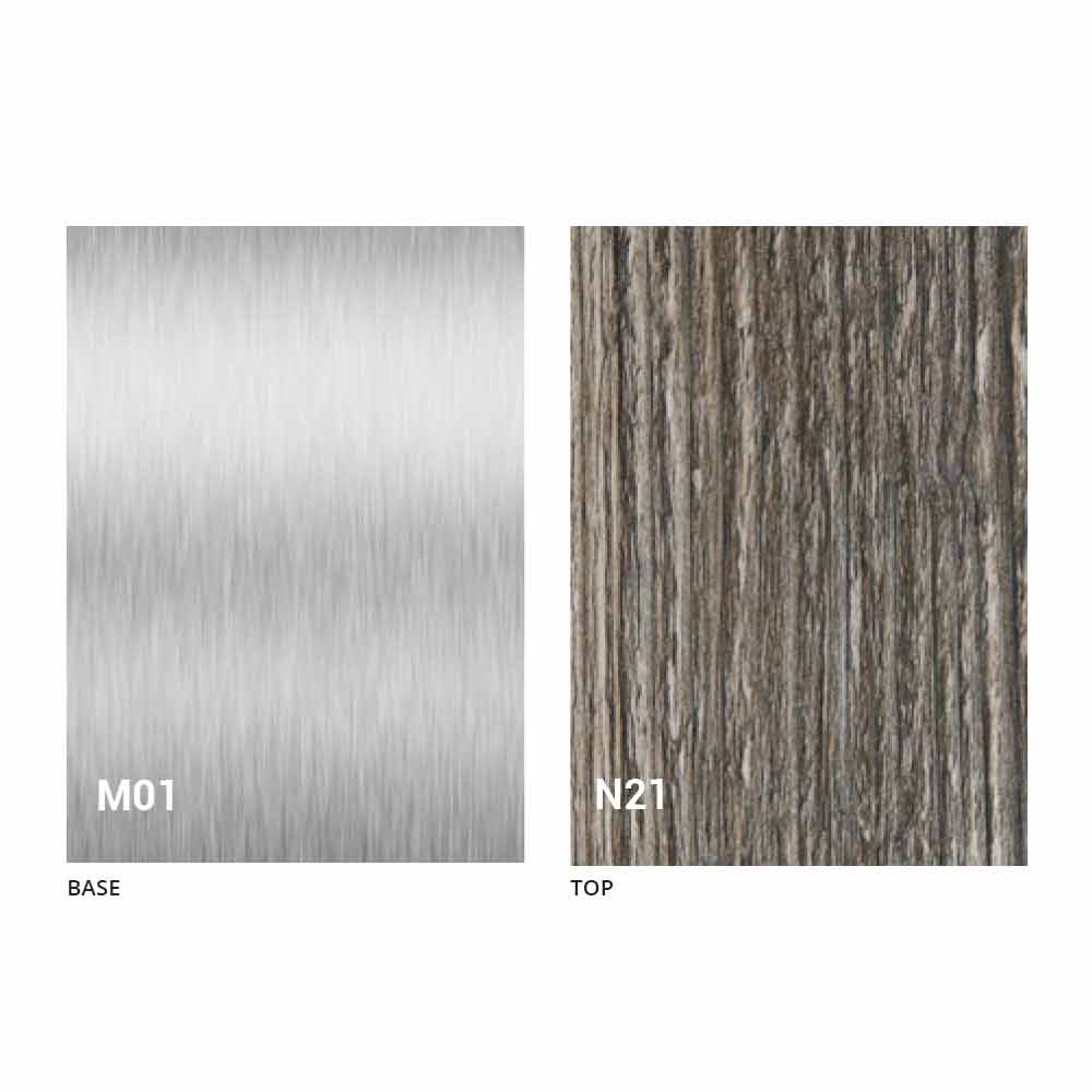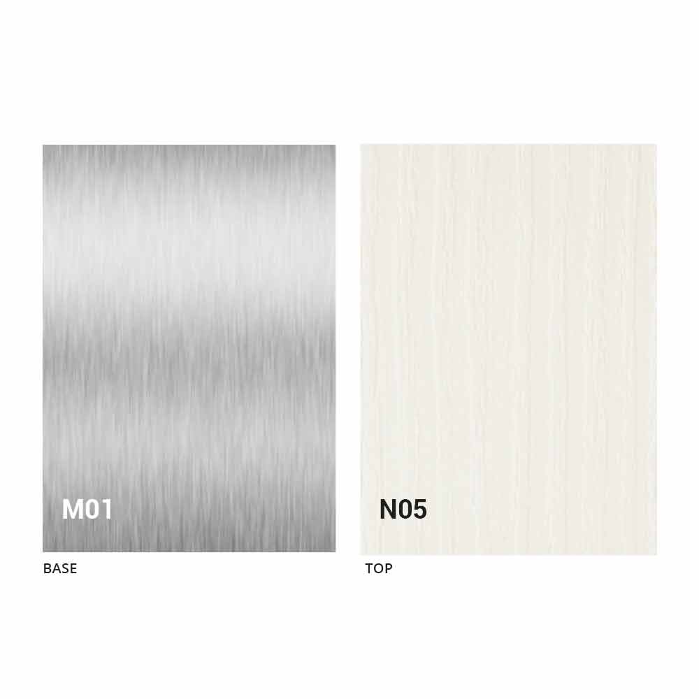 - Tischplatte aus aschgrauem, harzbeschichtetem Holz;