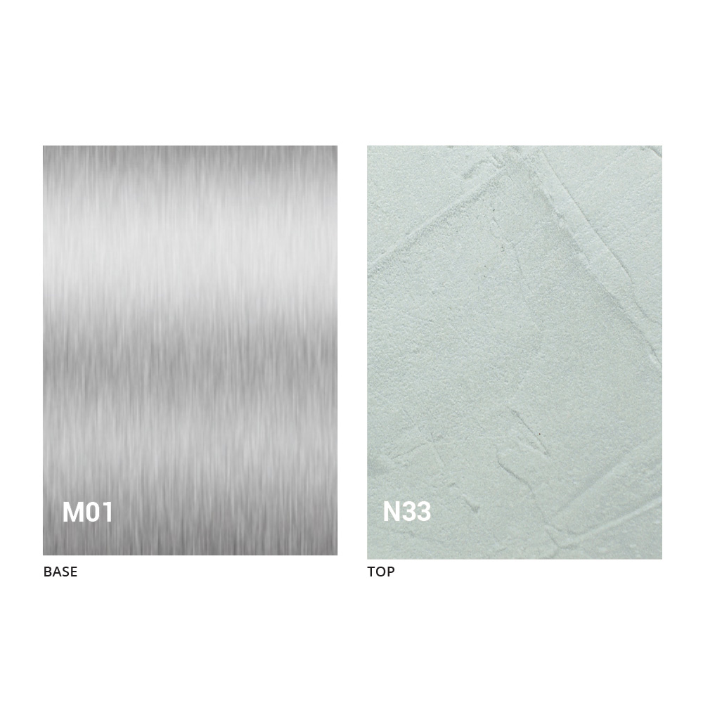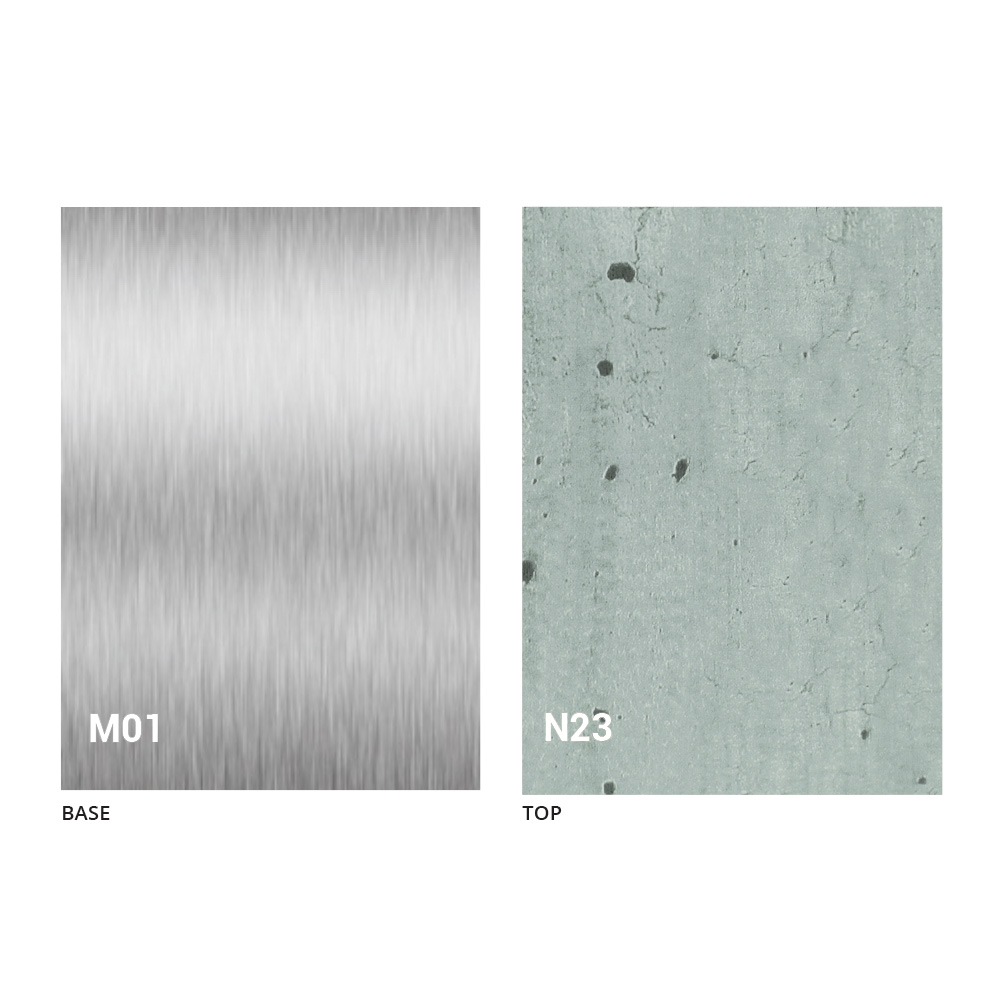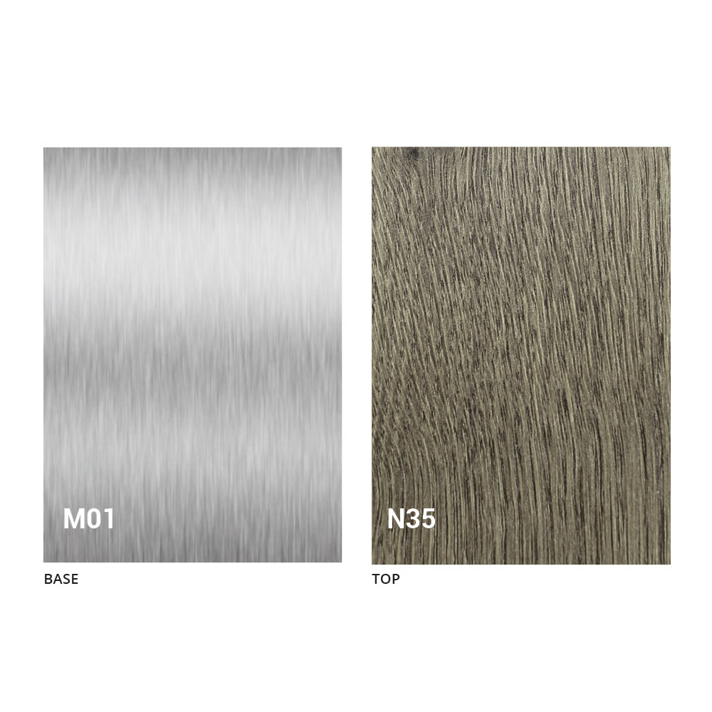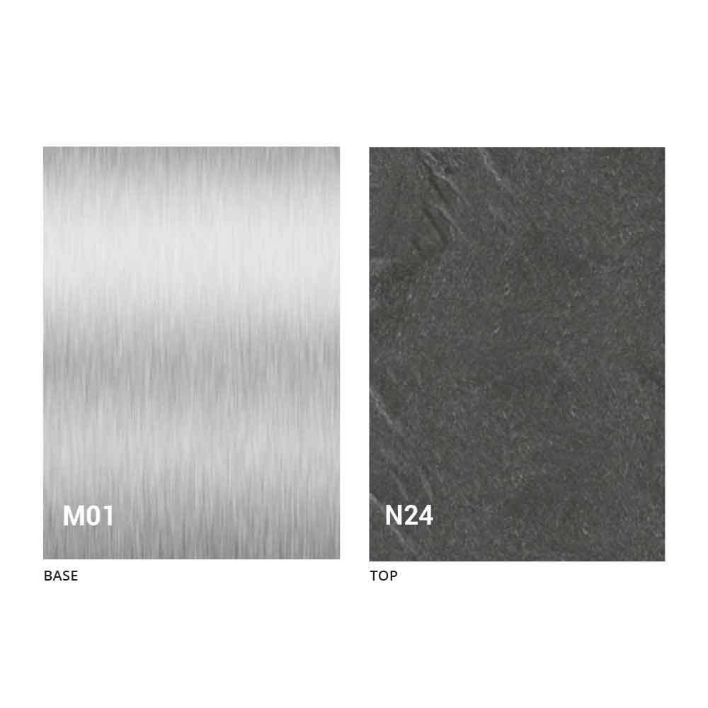 - Tischplatte aus aschgrauem, harzbeschichtetem Holz;
