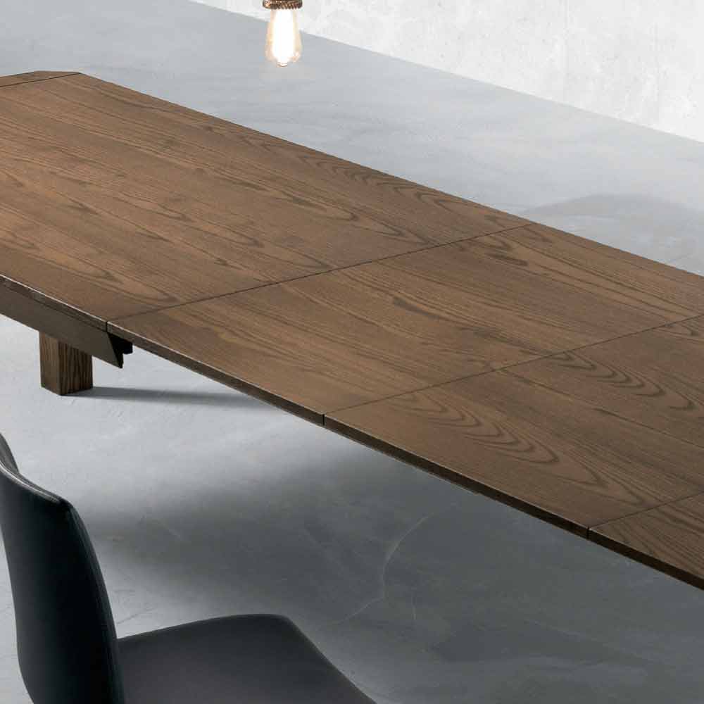 Moderner ausziehbarer Tisch mit trapezförmigen Beinen aus Eschenholz, Parre
