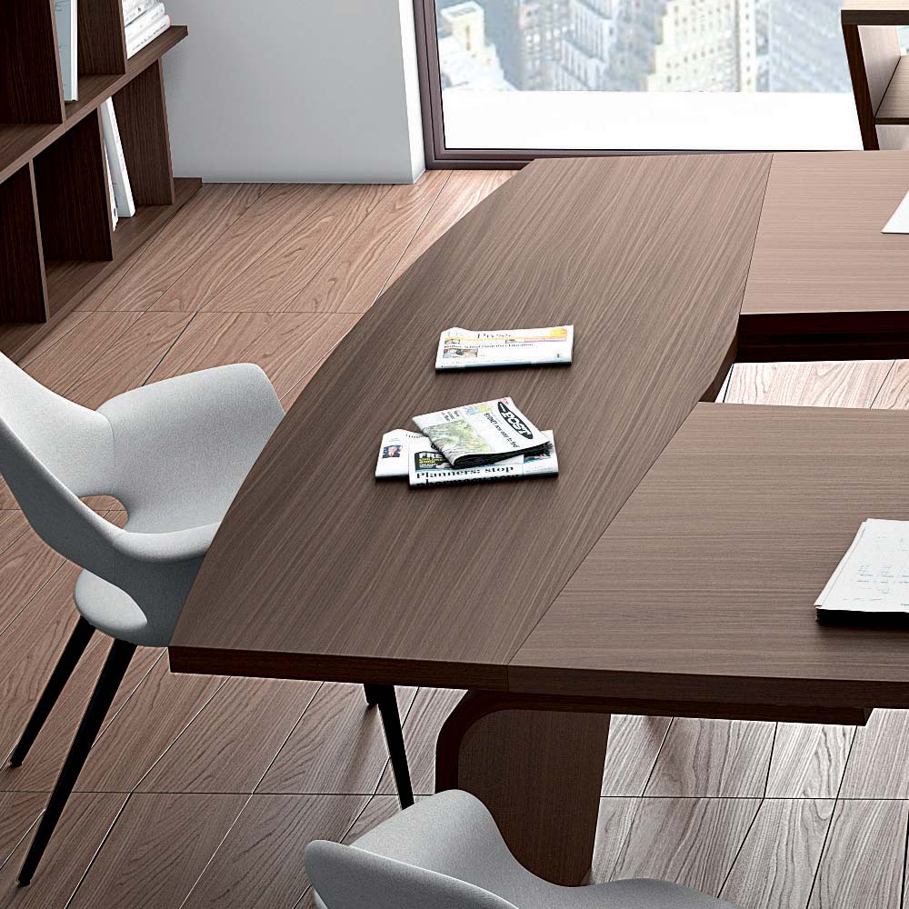 Die Platte besteht aus zwei geformten Platten und zwei Verlängerungen, die den Umfang der Platte schließen und einen imposanten und eleganten Besprechungstisch schaffen.