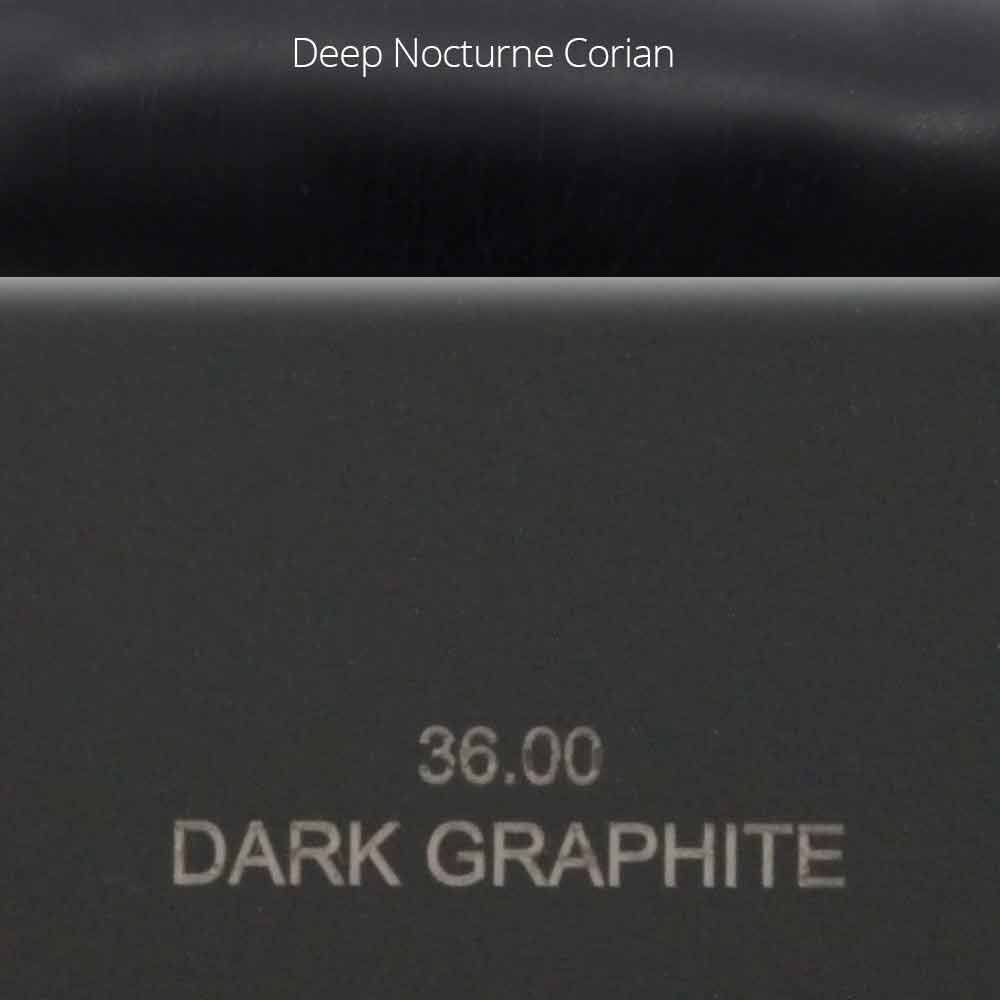 - Dunkler Graphit + Deep Nocturne Corian®: mattes kaltes dunkelgraues Finish mit Elementen aus schwarzem DuPont ™ Corian®;