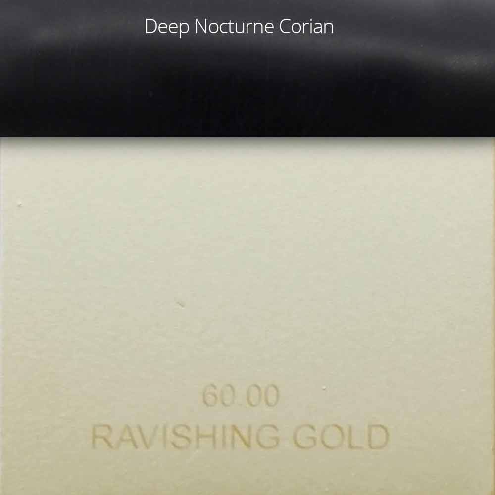 - Ravishing Gold + Deep Nocturne Corian®: Mattgold-Metallic-Finish mit Elementen in Schwarz DuPont ™ Corian®;