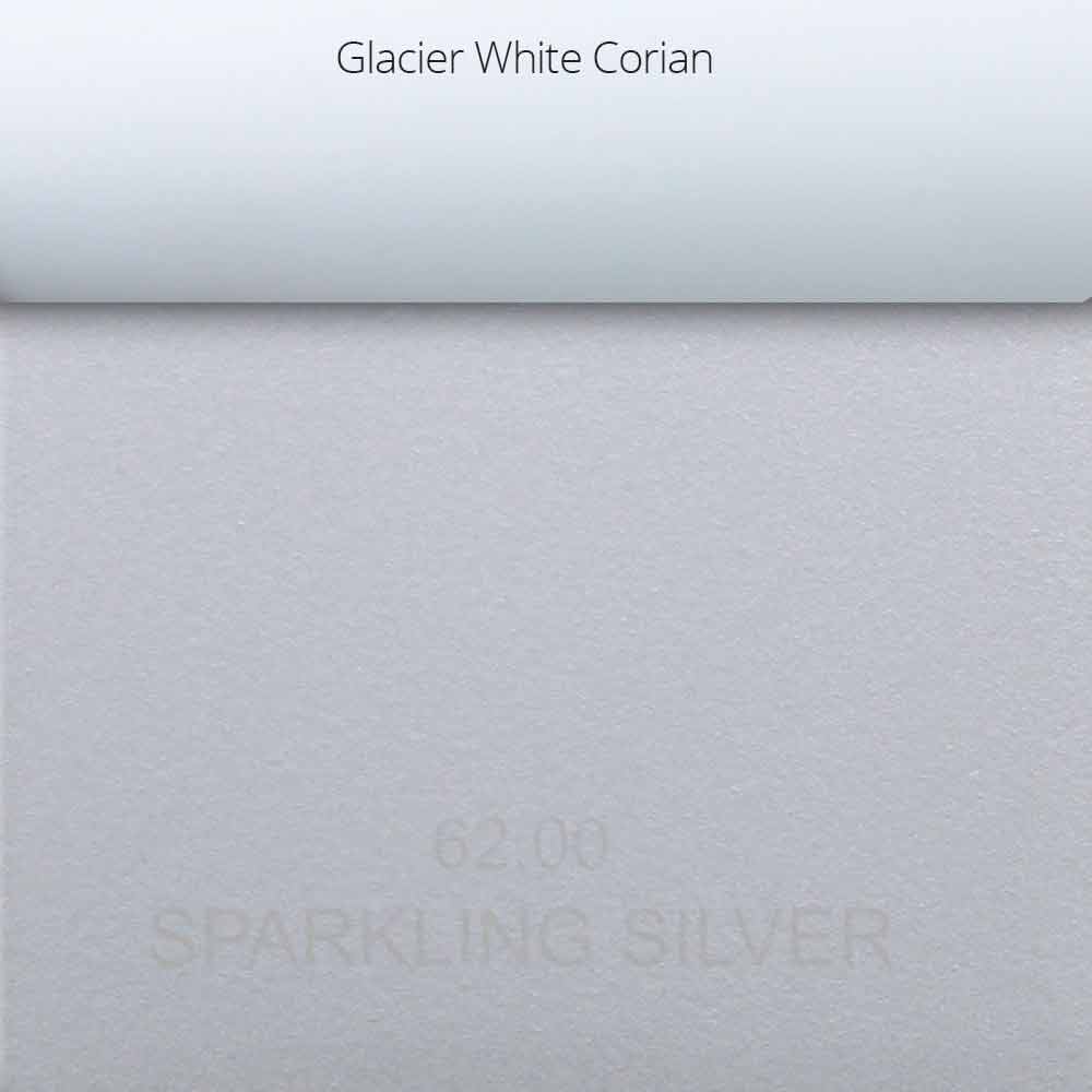 - Sparkling Silver + Glacier White Corian®: Metallic-Finish in mattem Silber mit weißen DuPont ™ Corian®-Elementen;