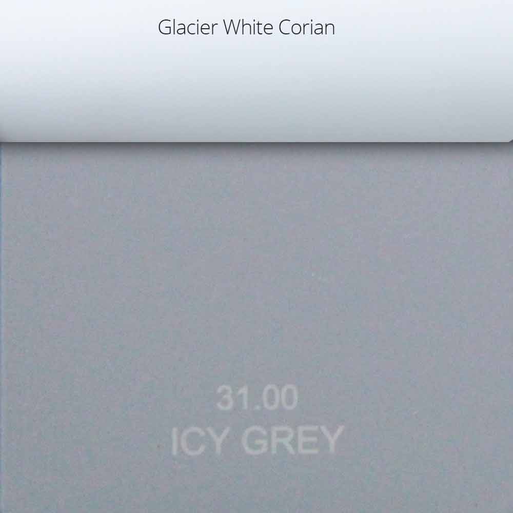 - Icy Grey + Glacier White Corian®: mattes kaltes hellgraues Finish mit weißen DuPont ™ Corian®-Elementen;