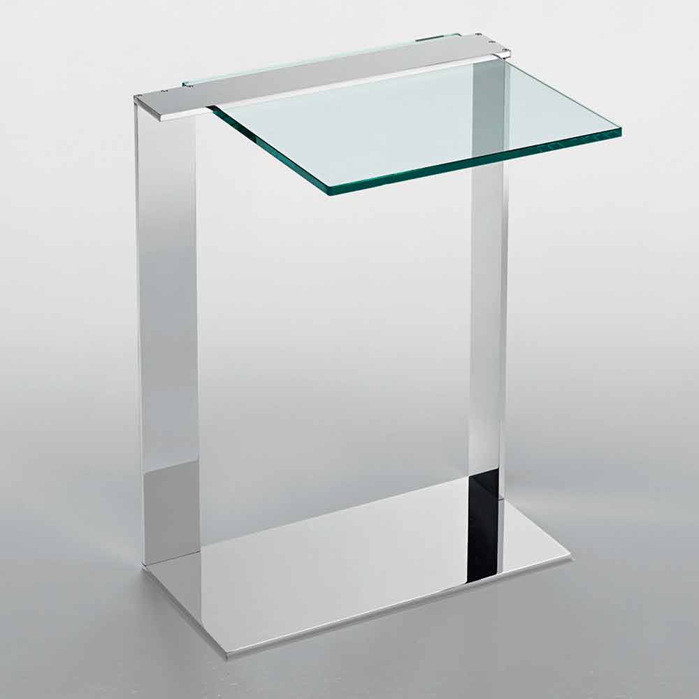 • Struktur aus verchromtem Metall, extra klare Glasplatte;