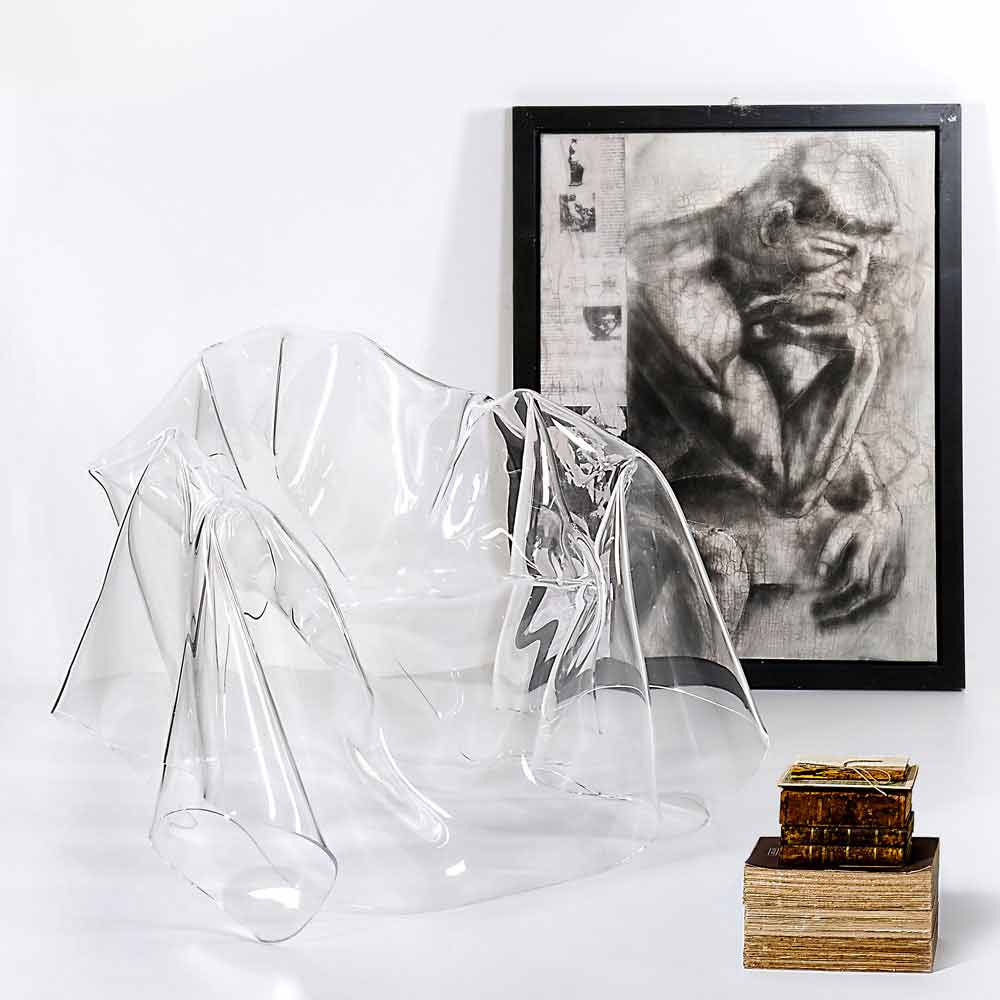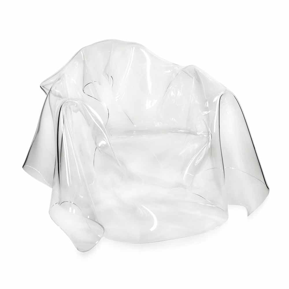 Der Pariser Sessel mit Vorhängen ist ein Unikat, ein modernes Kunstwerk. Aus einer Platte aus reinem, 100% reinem Polymer aus transparentem PMMA-Plexiglas, vollständig von Hand drapiert, entsteht ein einzigartiger und unwiederholbarer Sessel. Der Sessel ist völlig selbsttragend und bietet Platz für 1 Person. Die physikalisch-technischen Eigenschaften von Plexiglas (stoßfest, nicht verformbar, unveränderlich, wärmeisolierend) machen diesen Artikel zu einem praktischen und funktionellen Möbelstück, das für jede Umgebung geeignet ist. Die Helligkeit und Helligkeit werden über die Zeit konstant und unverändert beibehalten. Das PMMA Plexiglas aus reinem Polymer ist ungiftig, hypoallergen, geruchlos und antibakteriell. 100% recycelbar. Entworfen, entworfen und hergestellt in Italien, mit italienischen Materialien.