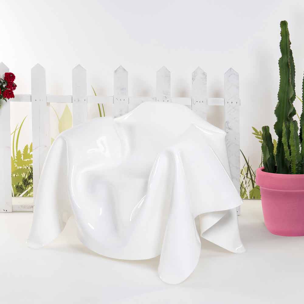Der Pariser Sessel mit Drapierung ist ein Unikat, ein Werk moderner Kunst. Aus einer Platte aus reinem 100% reinem Polymer aus PMMA Plexiglas von milchigem Weiß, komplett von Hand drapiert, entsteht ein einzigartiger und unwiederholbarer Sessel. Der Sessel ist völlig selbsttragend und bietet Platz für 1 Person. Die physikalisch-technischen Eigenschaften von Plexiglas (stoßfest, nicht verformbar, unveränderlich, wärmeisolierend) machen diesen Artikel zu einem praktischen und funktionellen Möbelstück, das für jede Umgebung geeignet ist. Die Helligkeit und Helligkeit werden über die Zeit konstant und unverändert beibehalten. Das PMMA Plexiglas aus reinem Polymer ist ungiftig, hypoallergen, geruchlos und antibakteriell. 100% recycelbar. Entworfen, entworfen und hergestellt in Italien, mit italienischen Materialien.