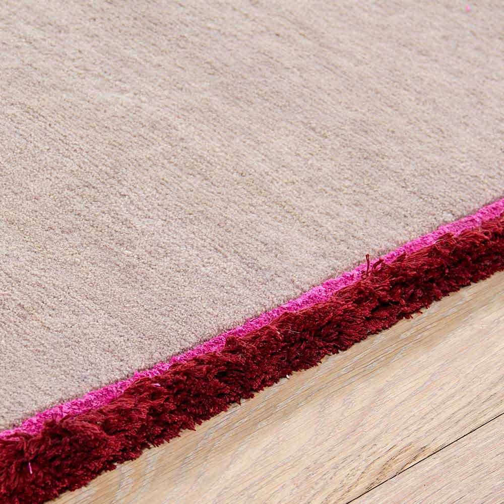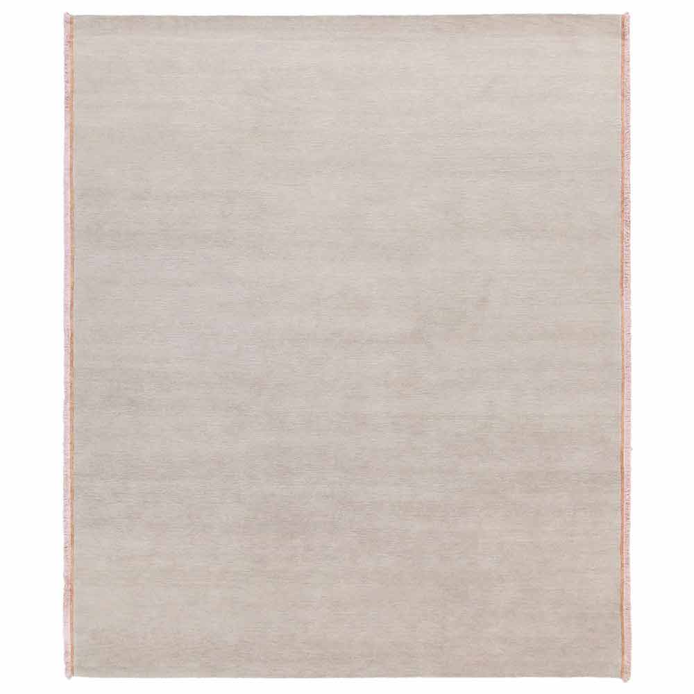 Modernes Design Teppich in zwei Dimensionen in Wolle und Baumwolle mit farbigem Rand in Seidenfransen erhältlich.