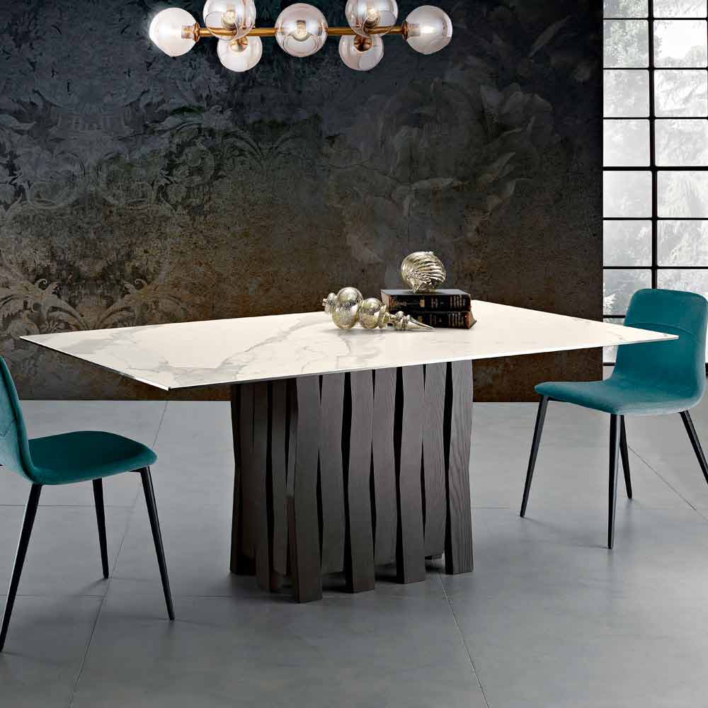 Egisto ist ein eleganter fester Tisch , der in Italien mit einer Glaskeramikoberfläche und einem festen Eschenholzunterseite verwirklicht wird.