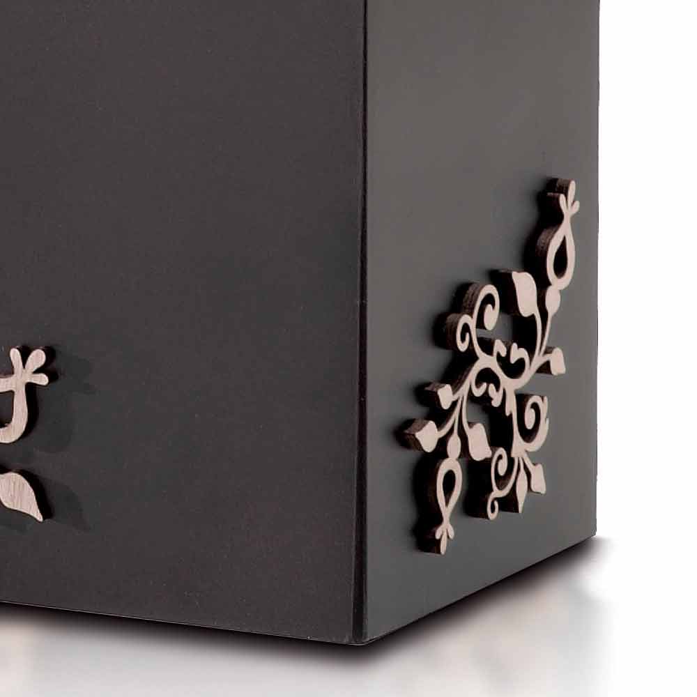 Schirmständer aus dunklem oder weißem Holz mit eleganten lasergeschnittenen Kontrastdekorationen, modernem rechteckigem Design und Made in Italy.