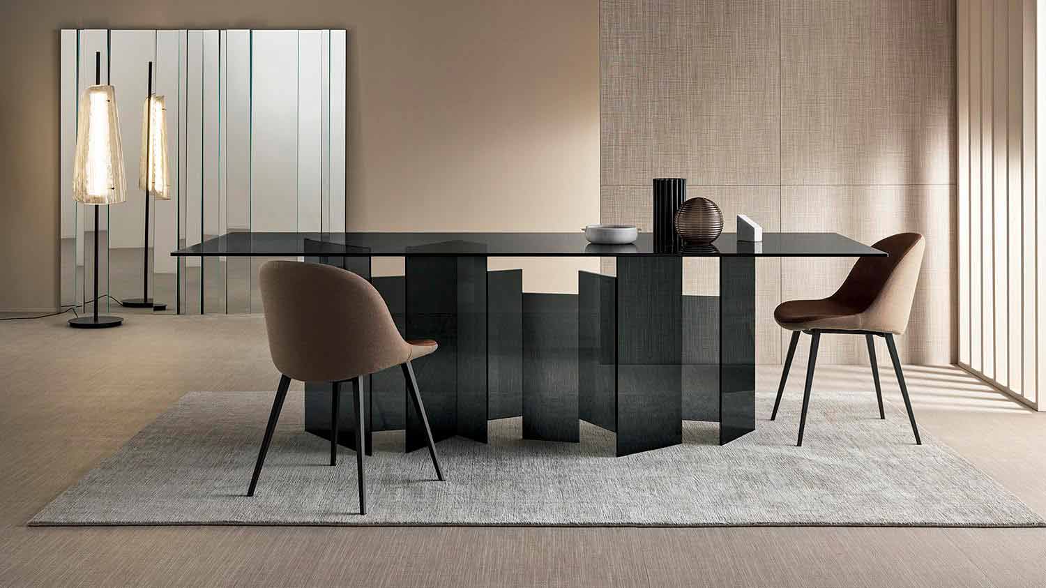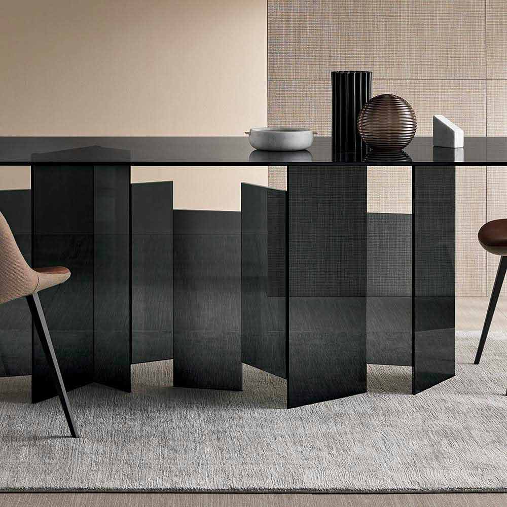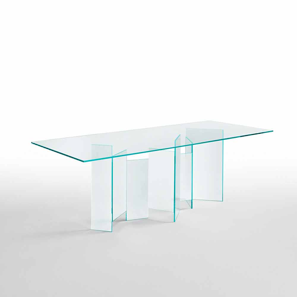 Esstisch in modernem Design aus extra klarem oder geräuchertem Glas, hergestellt in Italien.