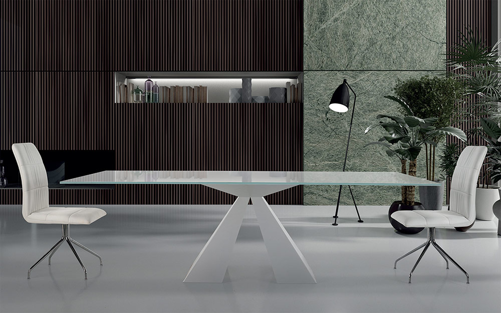 Moderner Esstisch aus Glas und weißem Stahl, hergestellt in Italien – Dalmatiner
