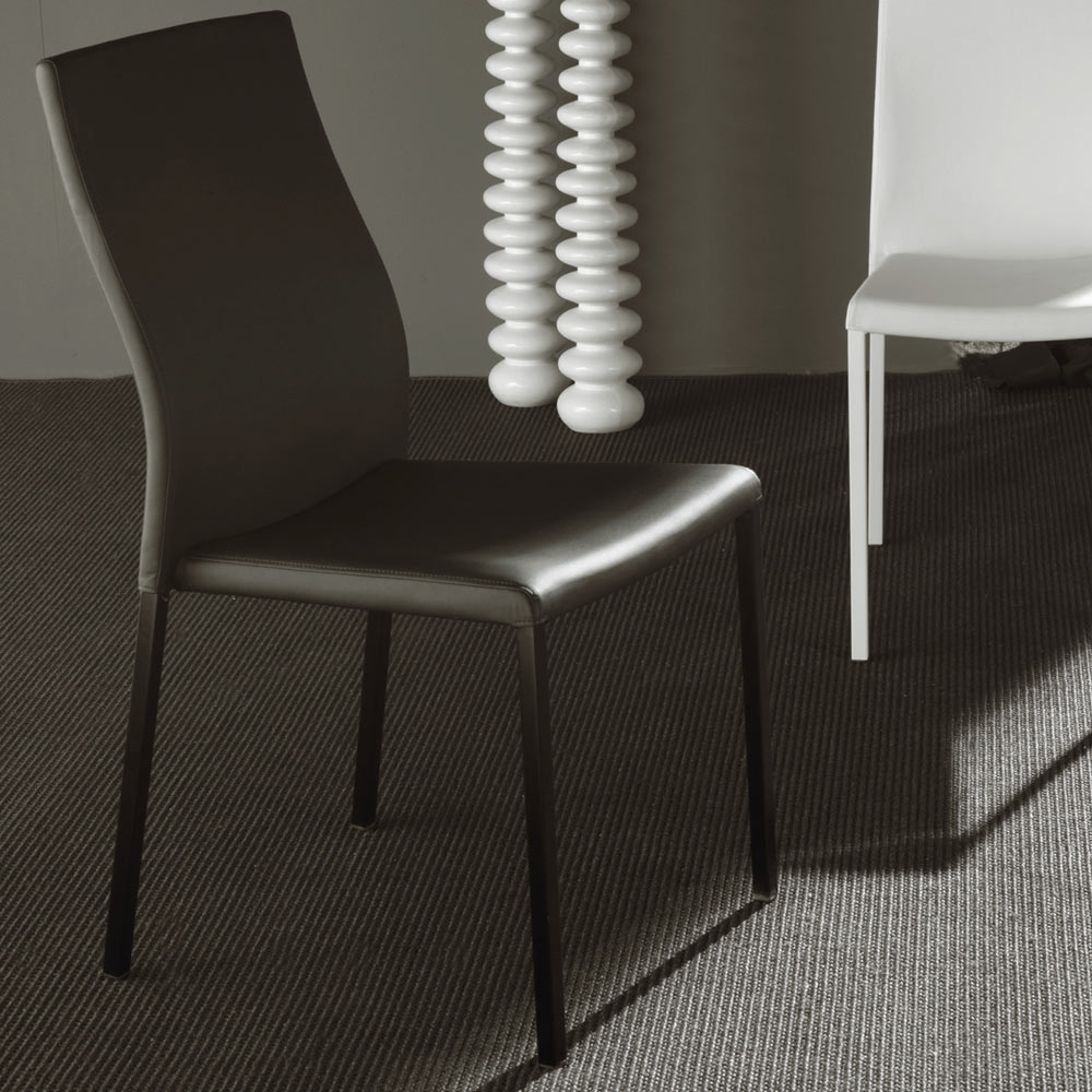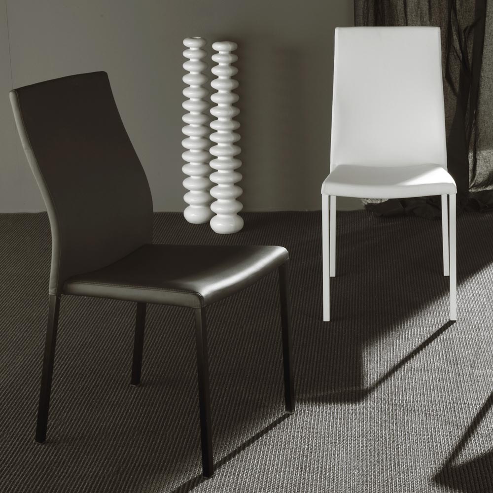 Stapelbarer Esszimmerstuhl bestehend aus Struktur aus lackiertem Metall und Sitz aus Kunstleder . Das Ergebnis einfacher und hochwertiger Materialien, die dazu beitragen, ein perfektes Produkt für jede Umgebung zu schaffen. Dieser Stuhl zeichnet sich durch ein schlankes und elegantes Design aus und hat einfache und geschwungene Linien, einen eleganten und zarten Stil , der Einfachheit und Raffinesse verbindet.