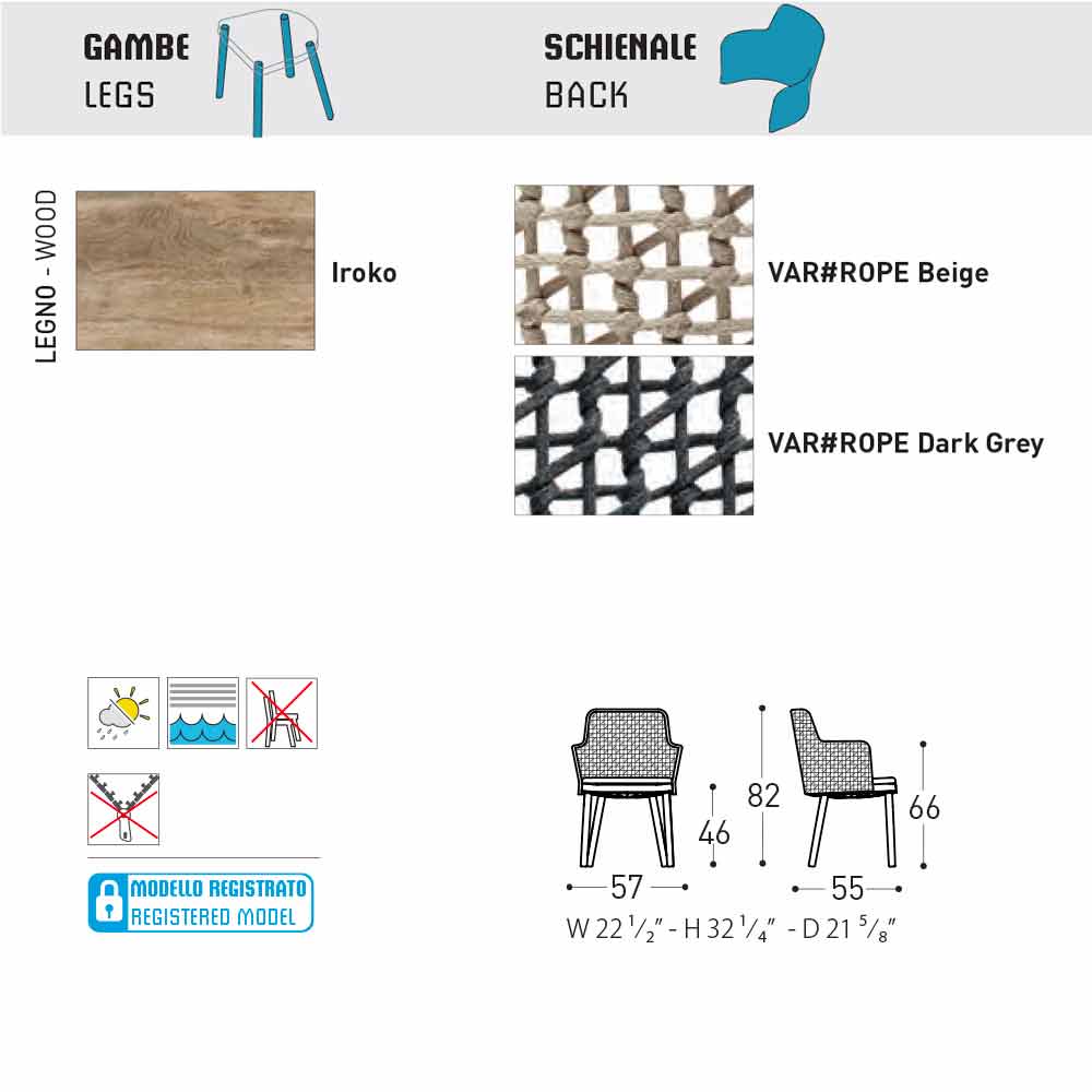 Die Beine sind aus massivem Irokoholz und die Sitzfläsche ist aus Stoff bezogen mit einer Sitzstruktur aus Polypropylen.
