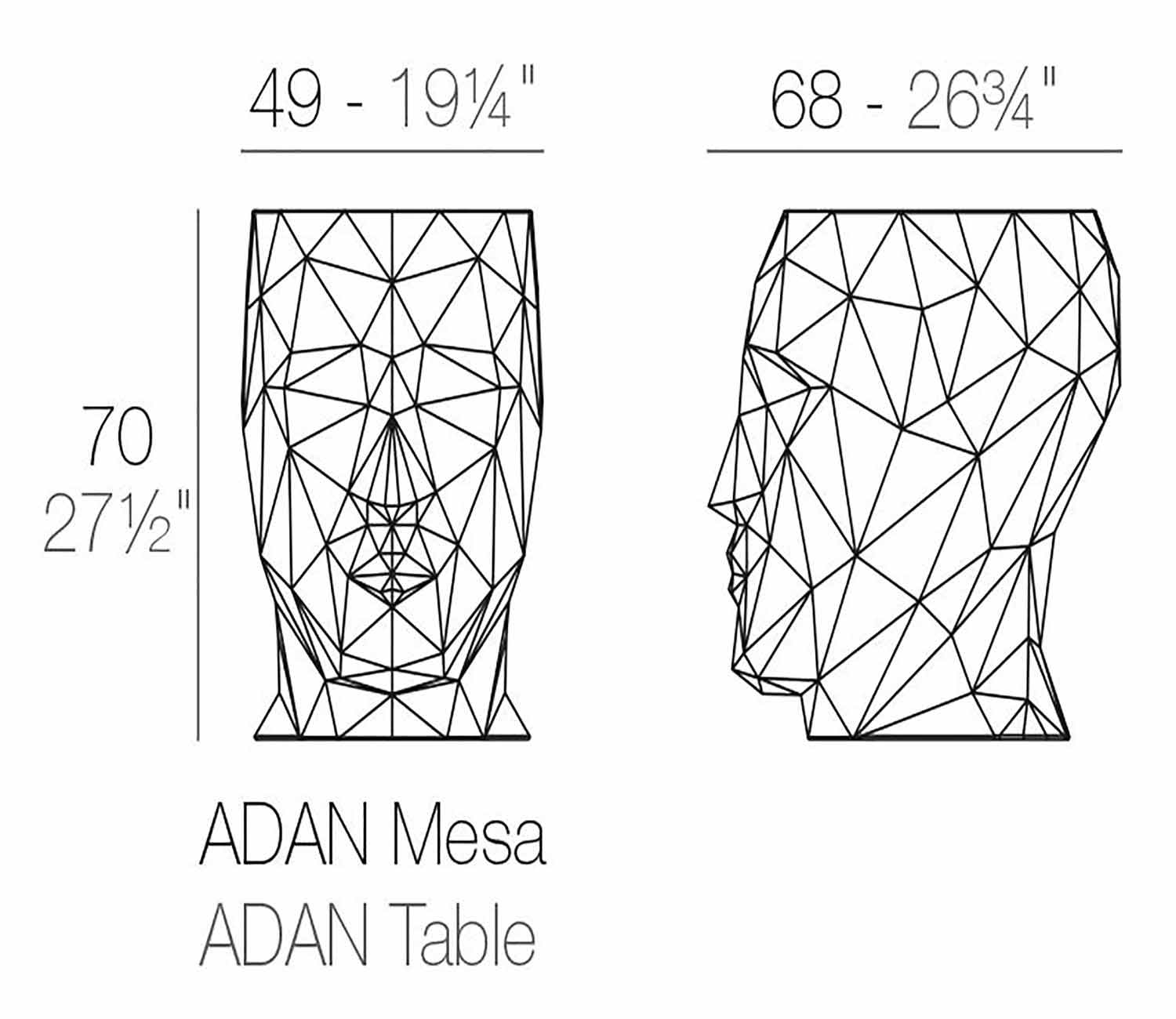Die Adan-Kollektion wurde von der Designerin Teresa Sapey entworfen. Mit dieser Linie überrascht sie uns, da die Objekte die Form eines Gesichts haben und die Linien an einen Diamanten erinnern. Eine Sammlung mit großer Persönlichkeit und nicht Objekte sind Teile einer multifunktionalen Architektur. Es sind Lifestyle-Objekte, die Aufsehen erregen, sich jedem Stil anpassen und aus Materialien bestehen, die sowohl den externen als auch den internen Gebrauch ermöglichen.