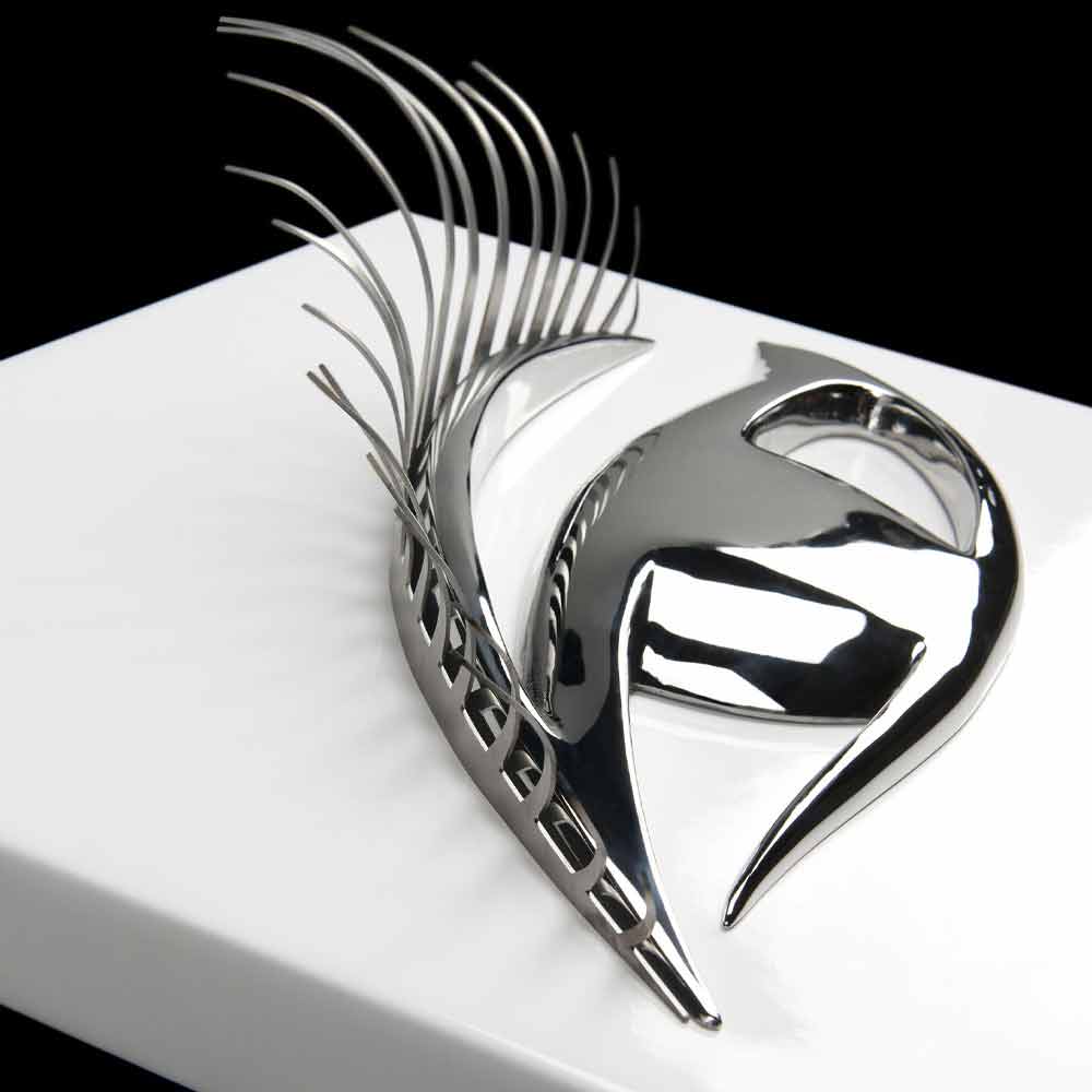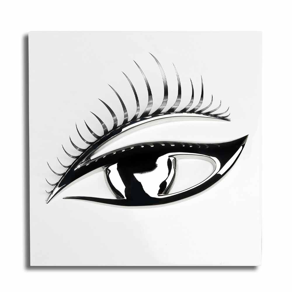In Italien handgefertigte Wanddekorplatte aus lackiertem Holz mit Stahlwimpern und Harzöse mit Chrom-Finish. Die Eleganz des Designs trifft auf die Raffinesse der Materialien, um eine originelle Ergänzung zum Leben zu erwecken, die Ihre Wohnwände auf exklusive Weise und mit einer